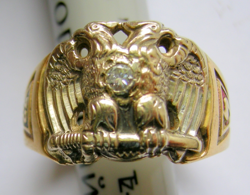 Золото, эмаль + маленький, но очень чистый бриллиантик.