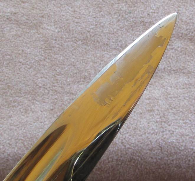 На конце клина с обеих сторон есть небольшие участки облезшего никеля.