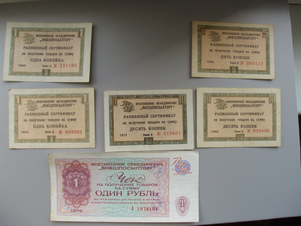 чеки внешпосылторг 1965 и 1972 копейки, 1976 рубль