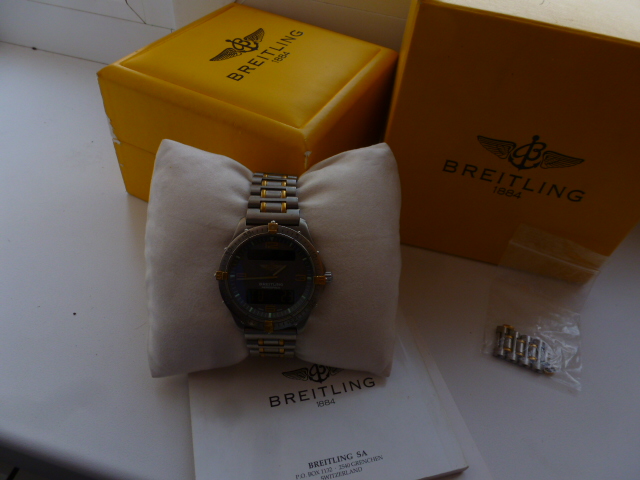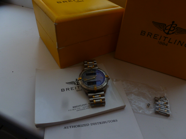 Продаю мужские оригинальные часы Breitling Aerospace F56062 титан-золото 24К.Мультифункциональные часы - секундомер,таймер,будильник,второй часовой пояс,день,дата.Калибр Breitling 65,диаметр 40 мм,толщина 9,8 мм,водозащита 100 м.Сапфировое стекло,браслет полный + запасные звенья,коробка,док-ты. В отличном состоянии,Цена 85 т.р,торг,пересылка.Вопросы и предложения в личку serg650@rambler.ru