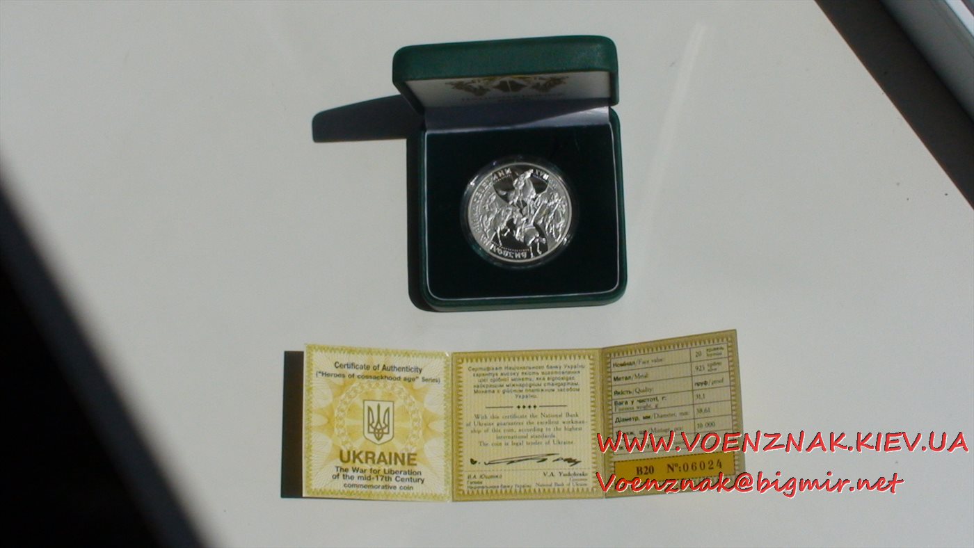 Серебряная монета 20 гривен "Освободительная война середины XVII века" 1998 год