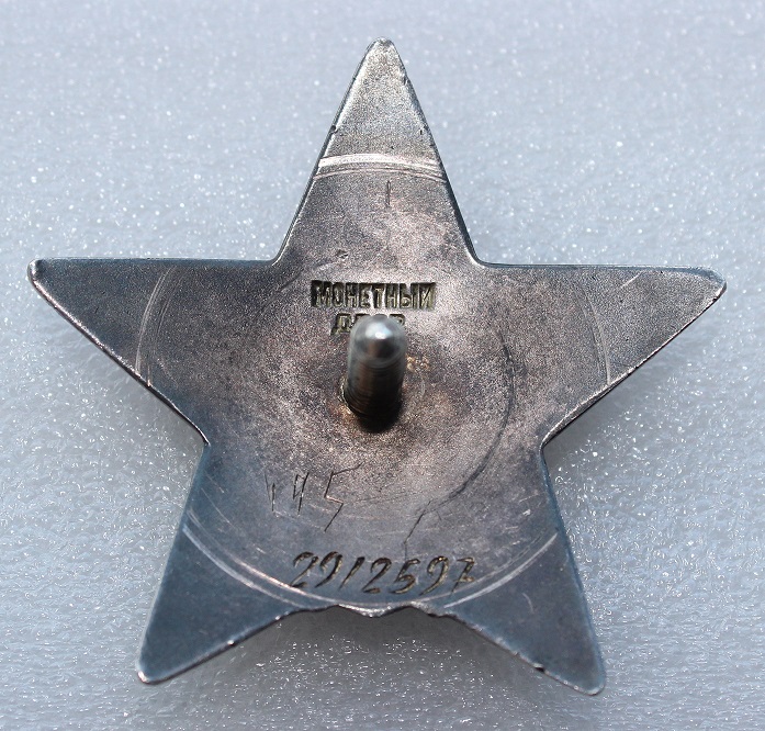 Вариант 2. Разновидность 7. Вероятно, ордена седьмой разновидности производились на ММД в 1949 году. Клеймо Монетного Двора небольшого размера и имеет характерную особенность. В отличие от клейм других разновидностей второго варианта, имеющих поднятую черточку над буквой Й в слове МОНЕТНЫЙ, у орденов седьмой разновидности черточка утоплена и не выступает над поверхностью буквы. Минимальный известный номер - 2912581, максимальный - 2952403.