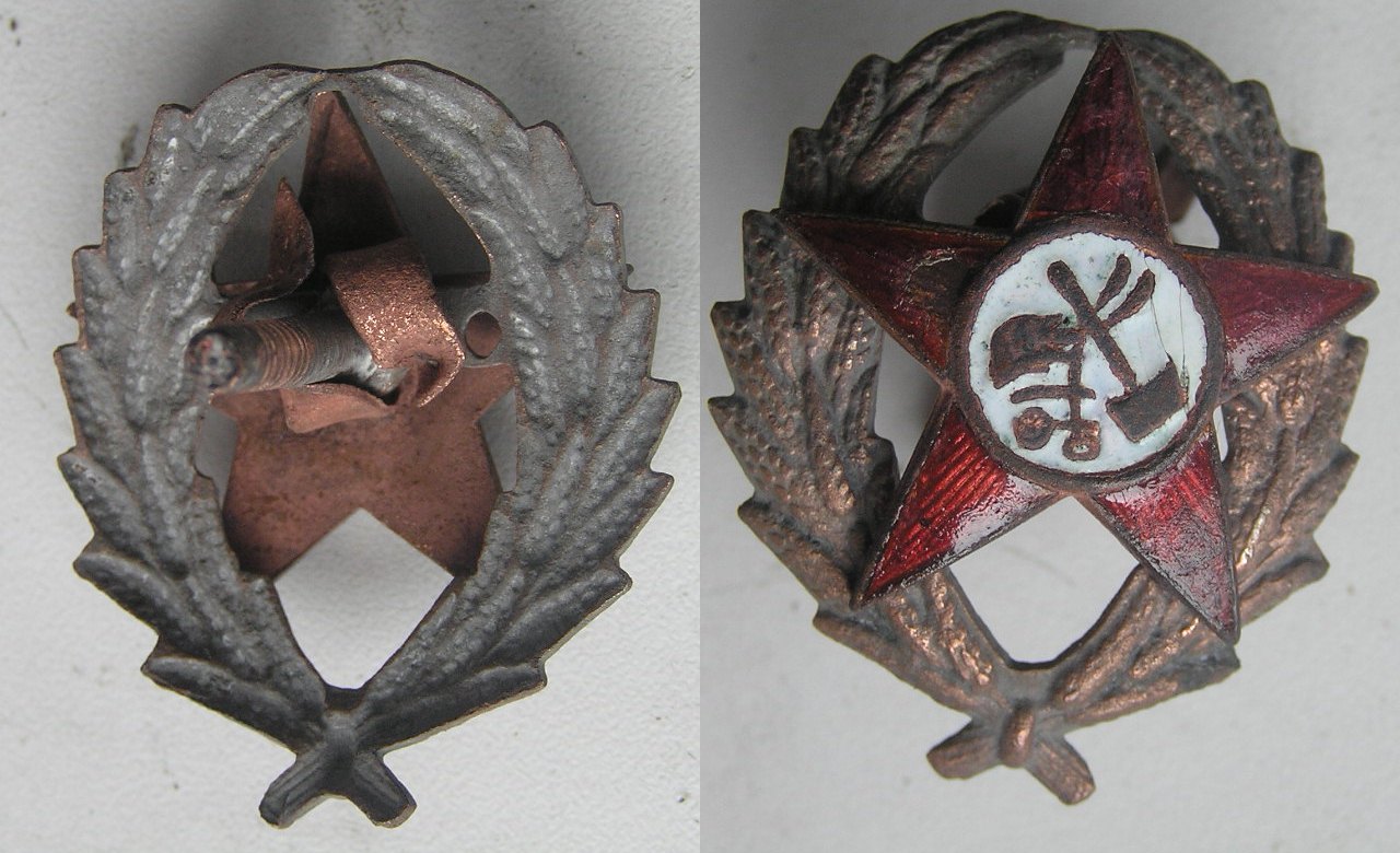 Эмаль родная,усы на звезде загнуты владельцем.Звезда люфтит на венке.Гайки не было-поставил от другого знака красного командира. 38*30 мм.