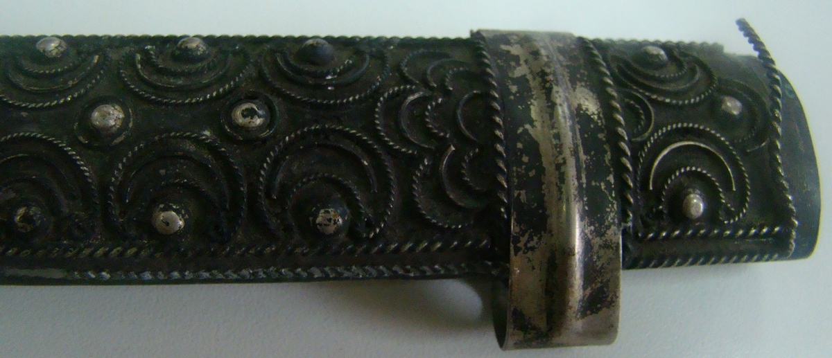 Ножны от кинжала vic s - 03 июл 2015 12:10.37 × Мини профиль пользователя vic s Сообщения: 11955 Зарегистрирован: 27 фев 2008 15:29.24 Статус: Не в сети - 03 июл 2015 12:10.37 #5238376 Проб нет,но очень похоже на серебро.Общий вес:147,8гр.Длина 31,7см Фото