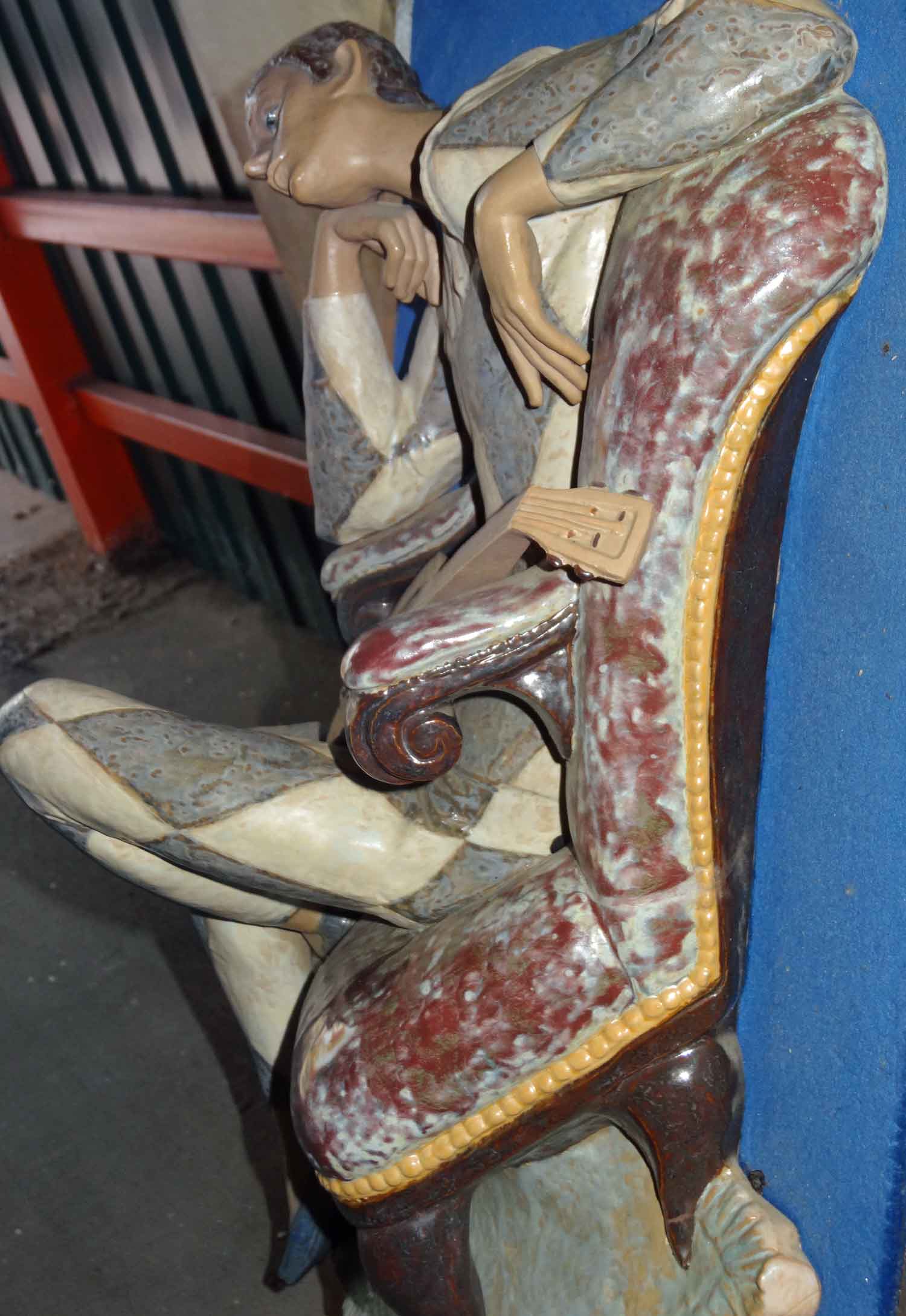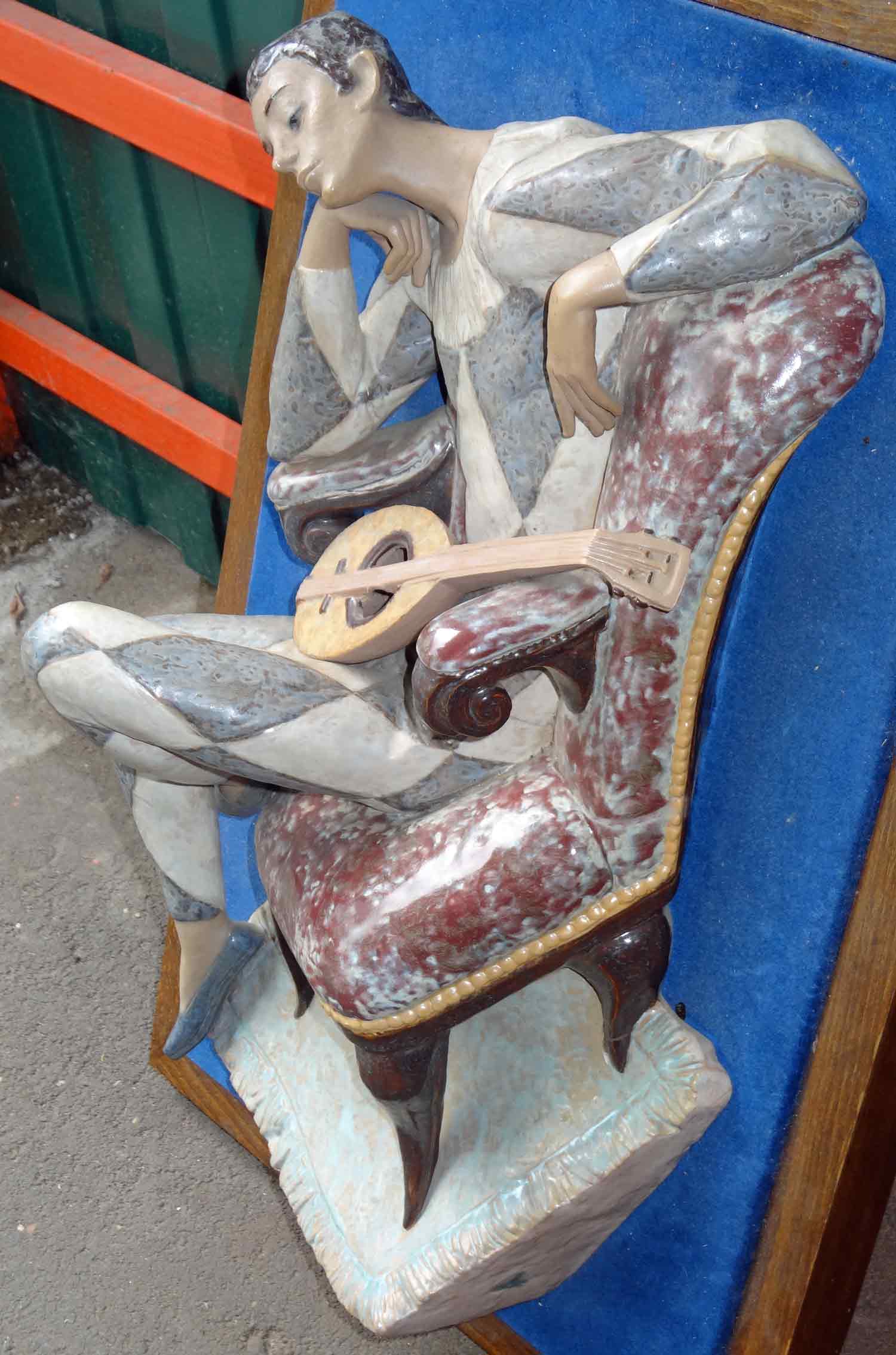 Парные (левый и правый) интерьерные горельефы фирмы Lladro (Испания) из серии "Балет и цирк" - Арлекин и Балерина, 1960-1970 гг. Фарфор. Временно закреплены на деревянных рамах с синим матерчатым фоном размером 43х64 см. Рельеф в максимальном выносе - 19 см. Тяжелые. Фигуры крепятся на два вертикально расположенных (сверху и снизу) металлических штыря с резьбой.