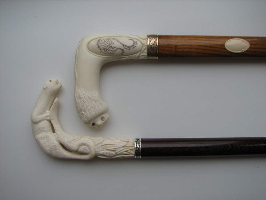 Коллекция эксклюзивных современных тростей:Рукоять из рога лося. Инкрустация бивнем мамонта и янтарем. Материал колец -бронза,серебро. Материал шафта - ясень,венге.Резьба по кости, инкрустация гравировка.Изготовление под заказ и продажа готовых работ.