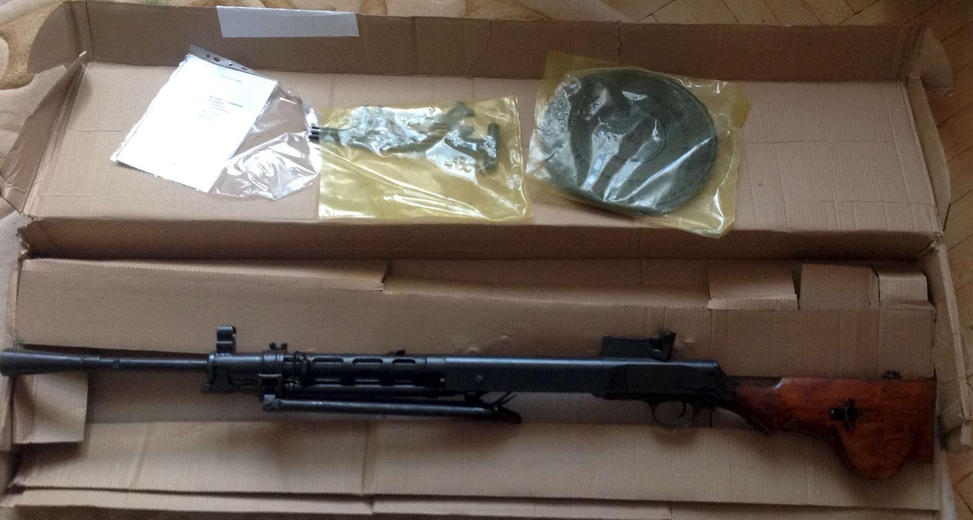 Пулемет 1944 год реальный монстр пламя шум гам,ну воина, диск на 47, авто огонь есть. Разбирается.