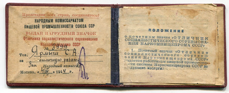 Re: Отличник СС Наркомпищепрома с документом zho8095 - 27 июл 2015 12:35.00 × Мини профиль пользователя zho8095 Сообщения: 5967 Зарегистрирован: 10 окт 2010 15:47.04 Откуда: Россия Статус: Не в сети - 27 июл 2015 12:35.00 #5264163 45 С Ув. Александр zho8095@yandex.ru