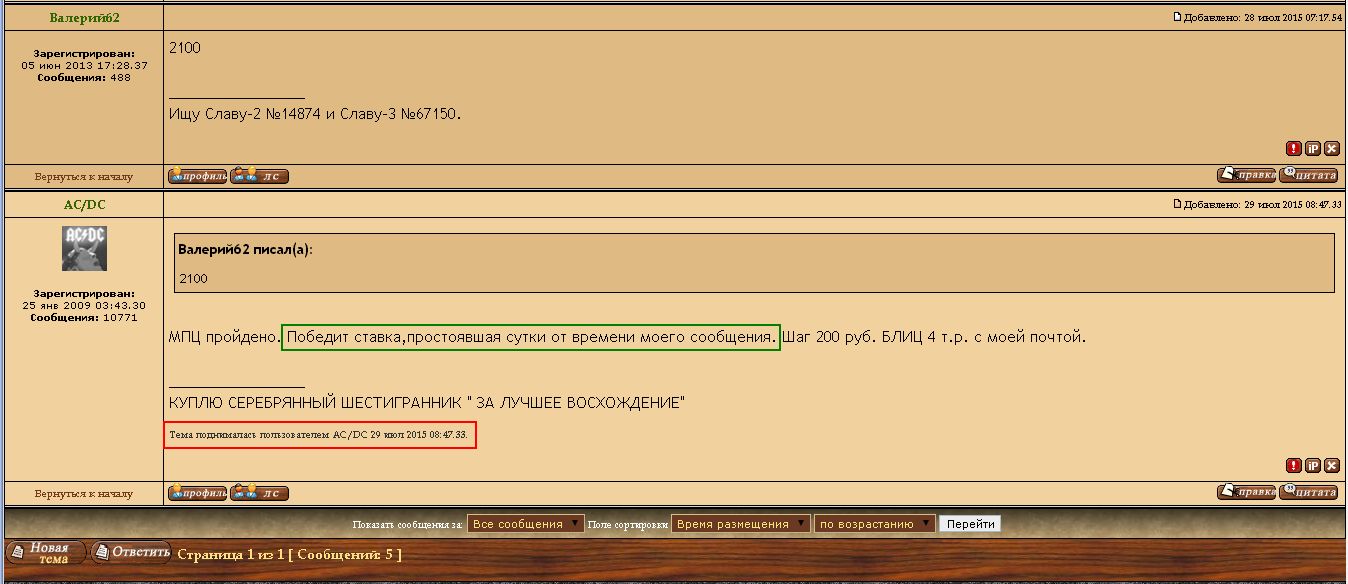При отсчёте времени от ставки = крайнего сообщения, нельзя поднимать тему кнопкой "поднять тему" - только новым сообщением.