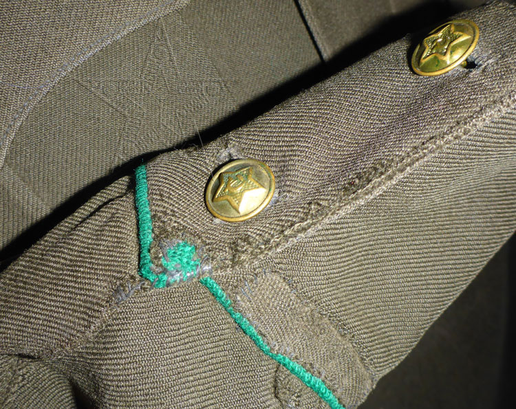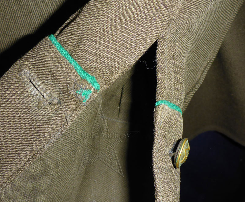 Гимнастерка темно-зеленого цвета.