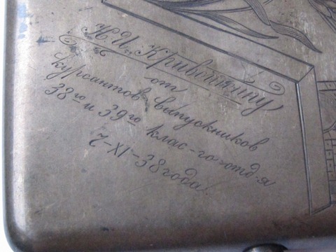 Серебряный портсигар 1938 г. дарственная надпись , 875 проба
