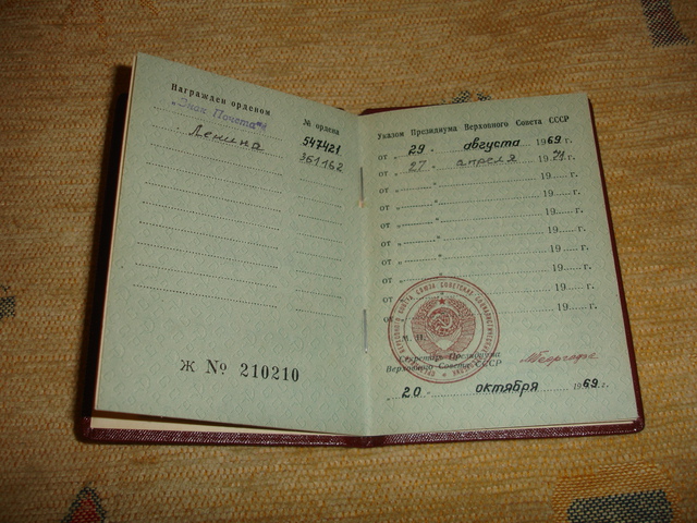 Вашему вниманию Орденская книжка на орден Ленина + Знак Почёта