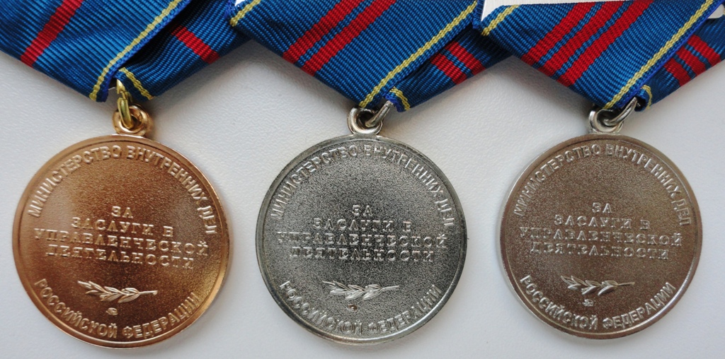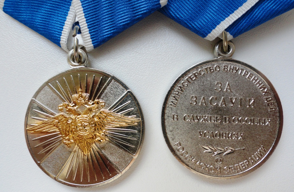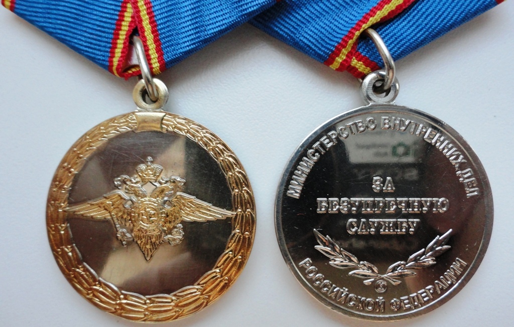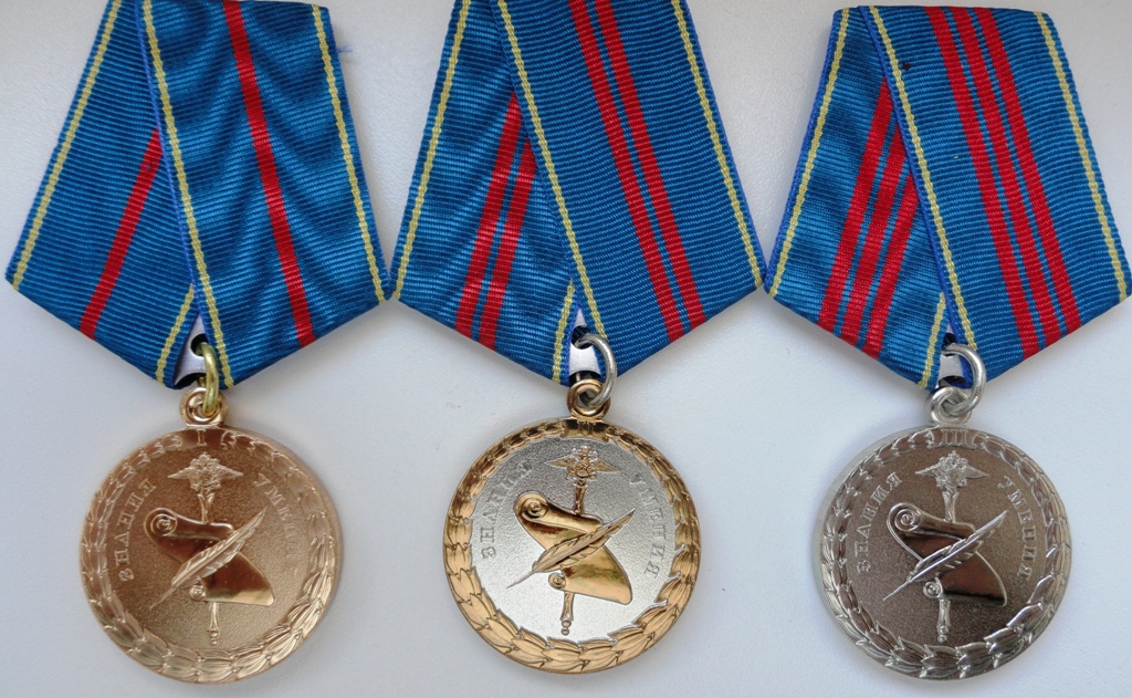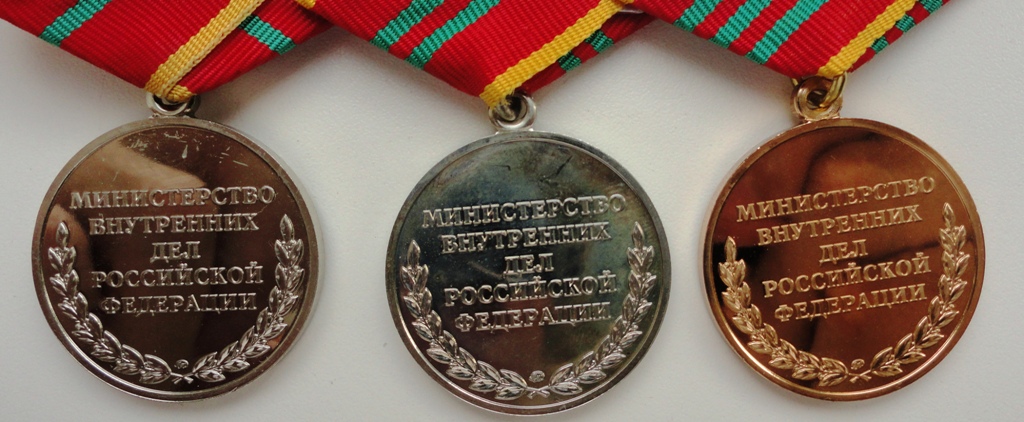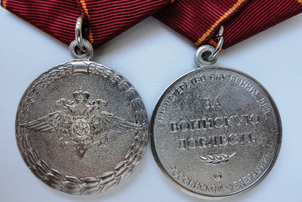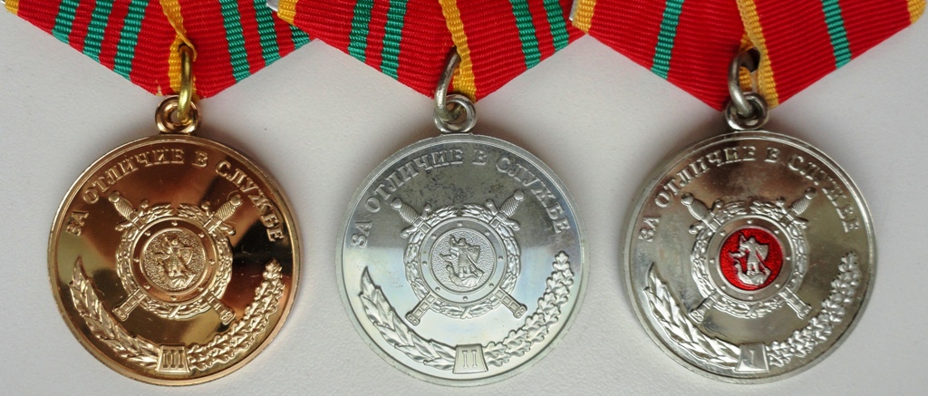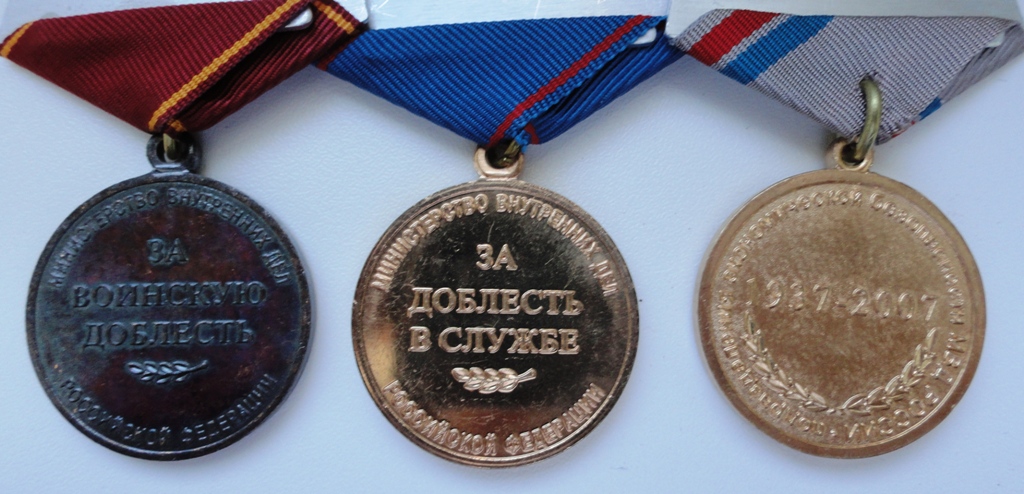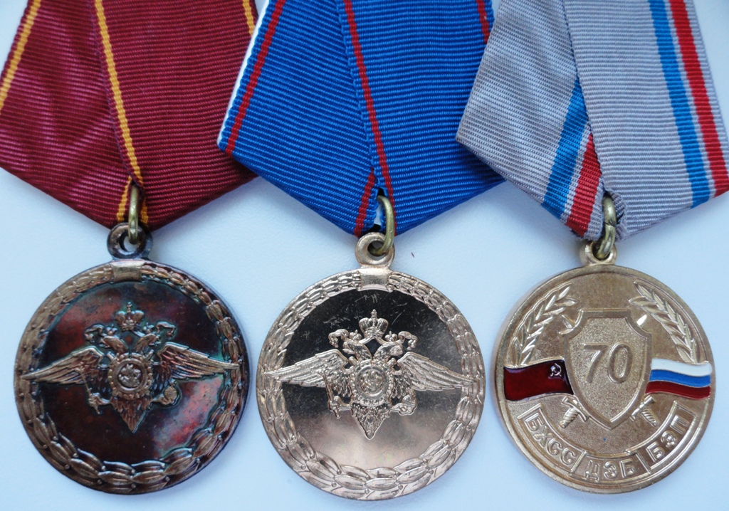 Медали: "За воинскую доблесть", "За доблесть в службе", "70 лет БХСС-ДЭБ-БЭП", производство МФЗ.