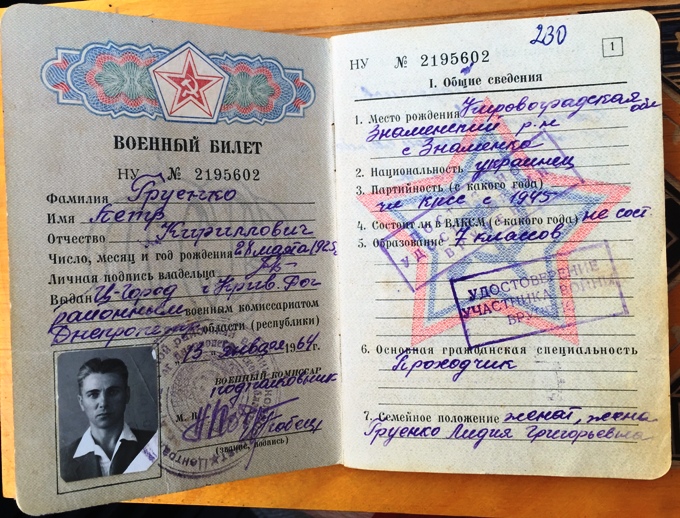 Фото военного билета, нет в наличии.