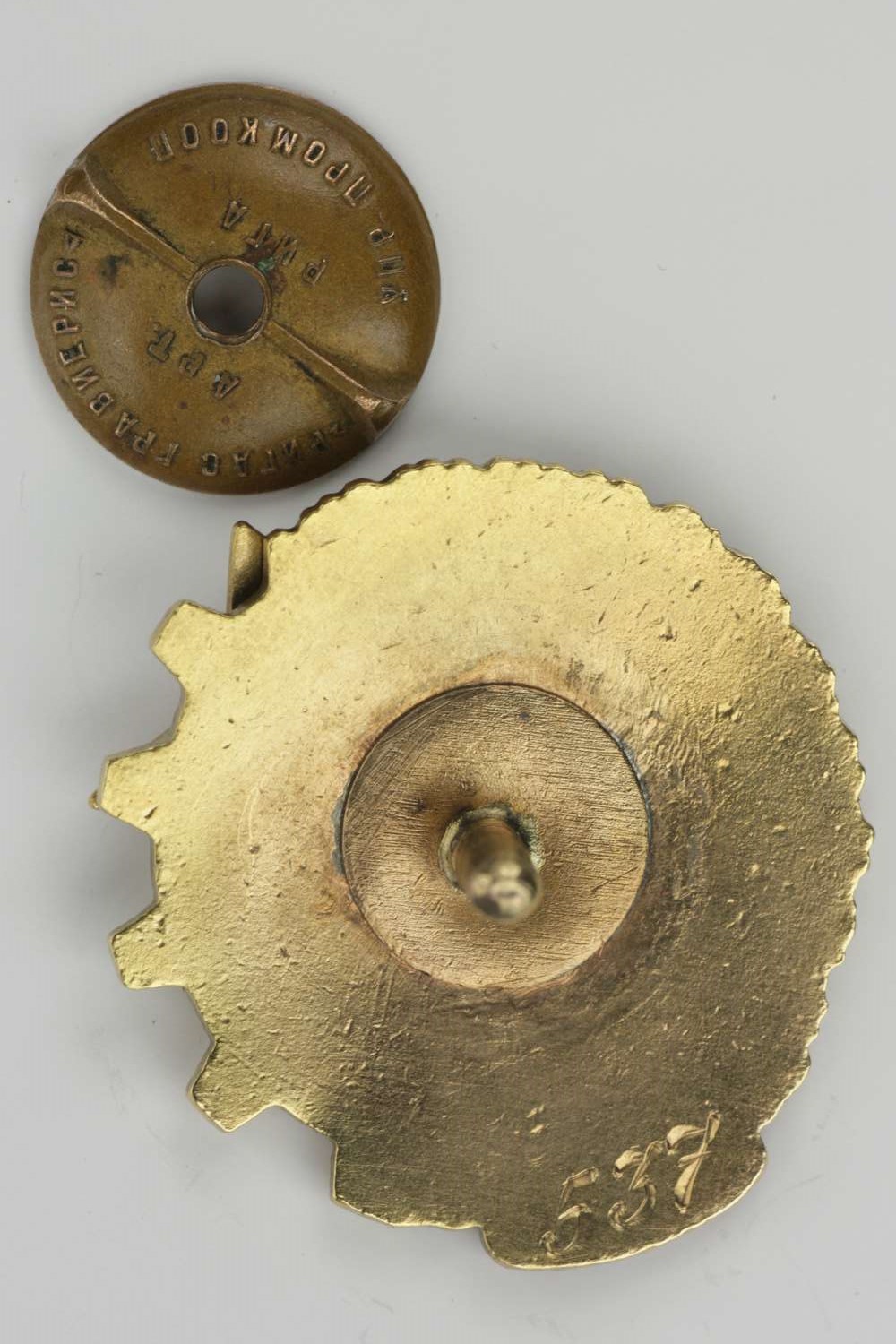 Отличник промкооперации Латвийской ССР. Номерной - 537. Латвия. Тяжелый металл, эмали, накладка, закрутка, винт.