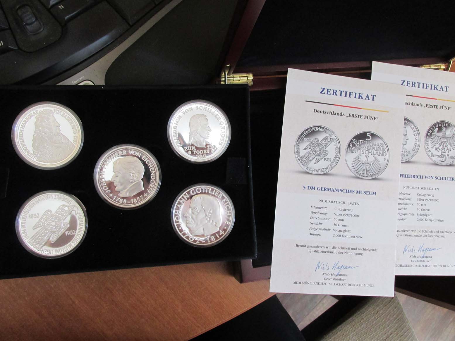 Вот такой набор, с сертификатами, серебро,