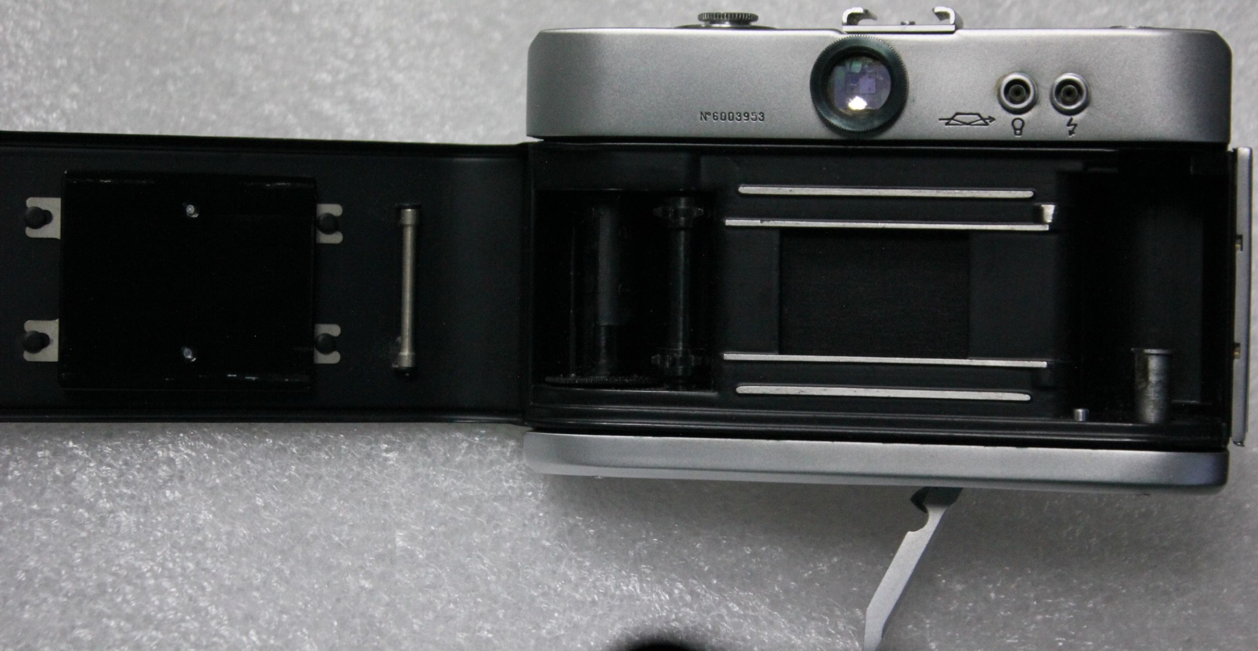 Фотоаппарат в хорошем рабочем состоянии. Единственный небольшой дефект:приходится подталкивать рычажок затвора при установке его на место ( находится в нижней части фотоаппарата), но сам затвор работает нормально.