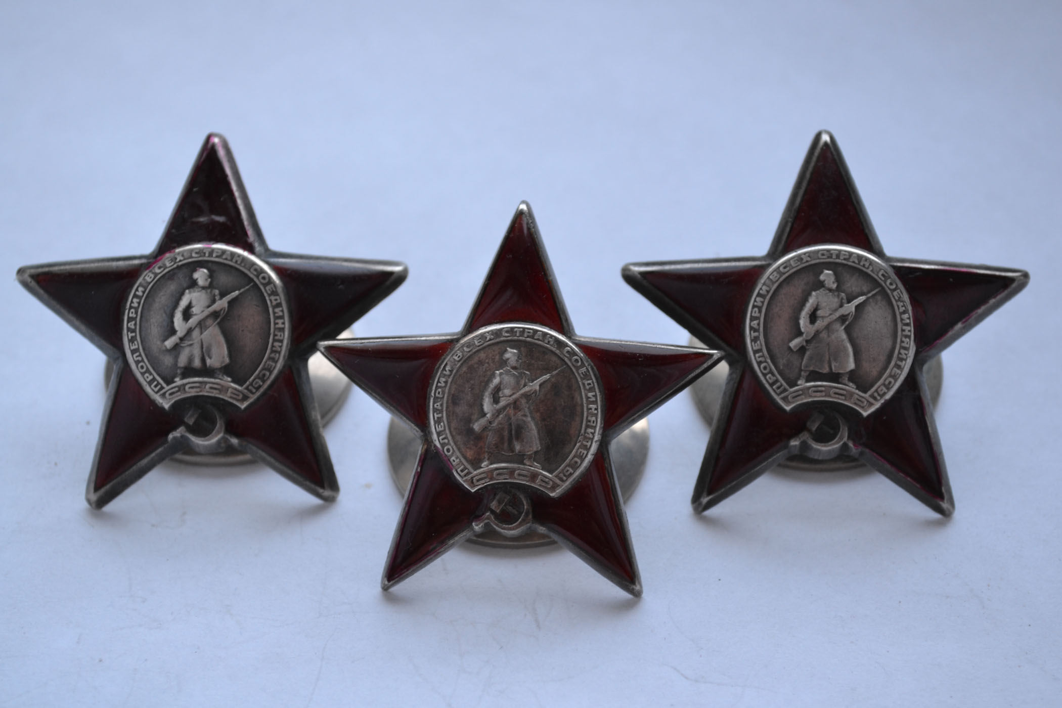 На левой: битый и замазан луч на 12часов; на средней: битый и замазан луч на 7 часов; на правой: битые и замазаны лучи на 3 и 5 часов.