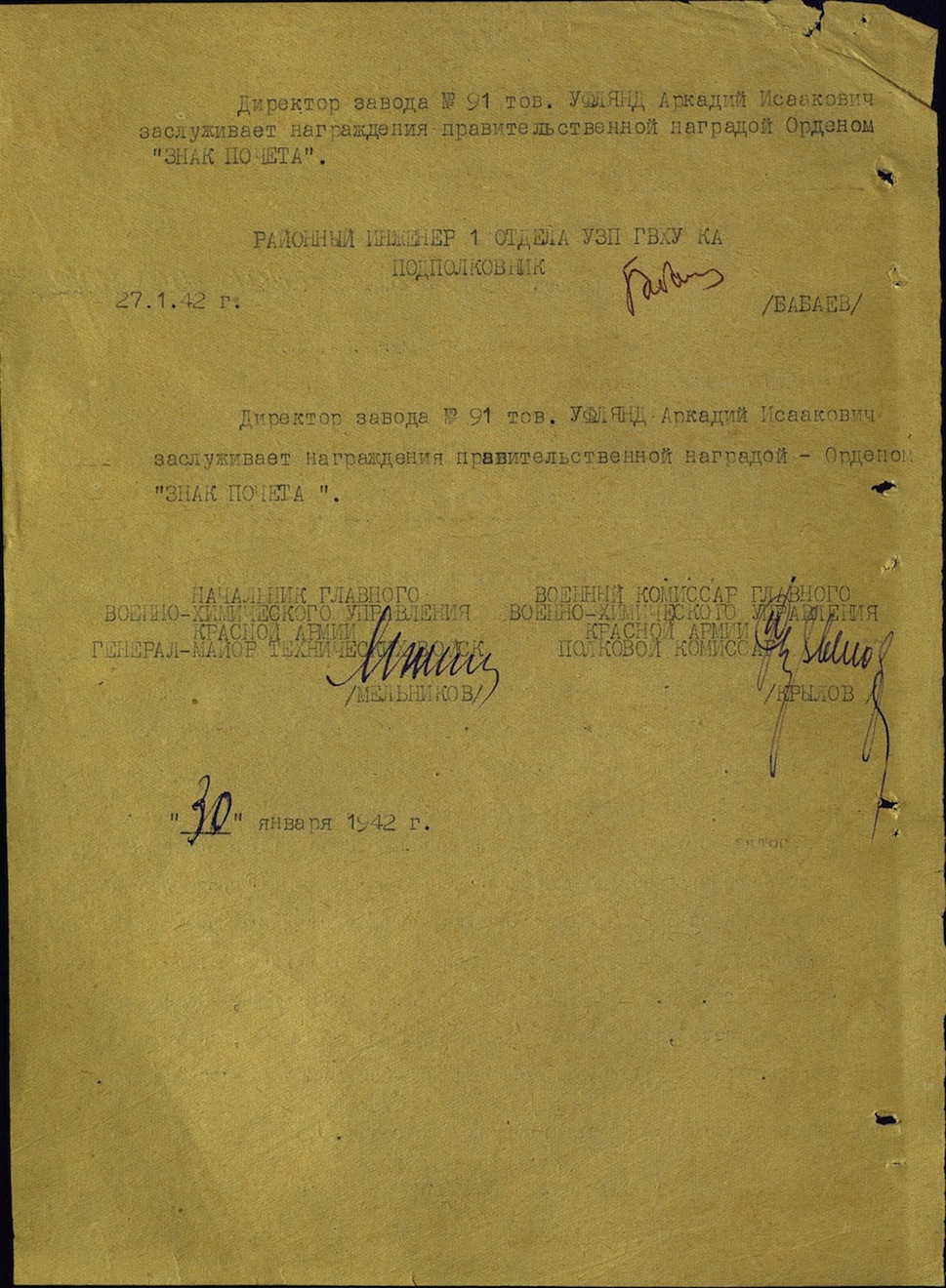 Уфлянд А.И. - Директор военного завода №91