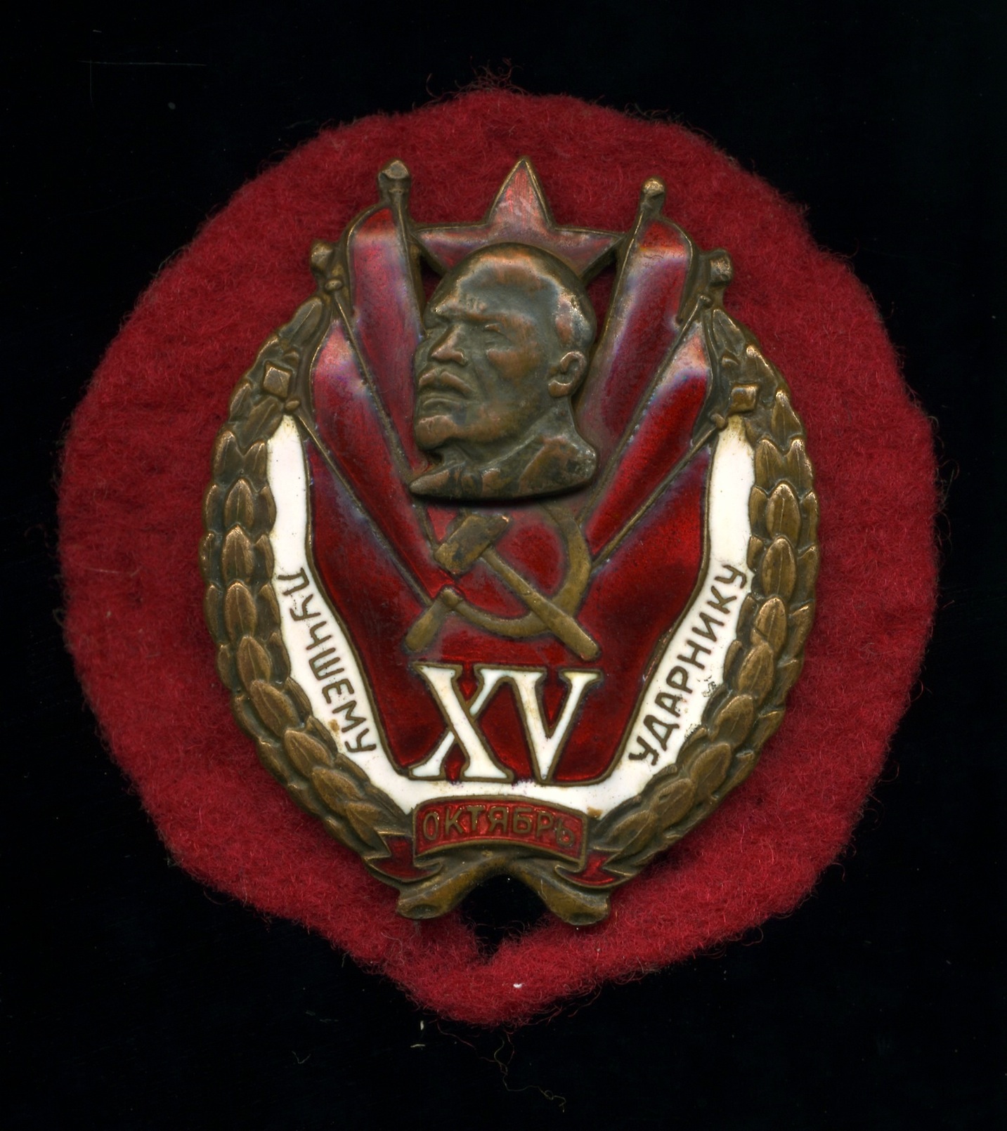 Лучшему ударнику - XV лет Октябрю.