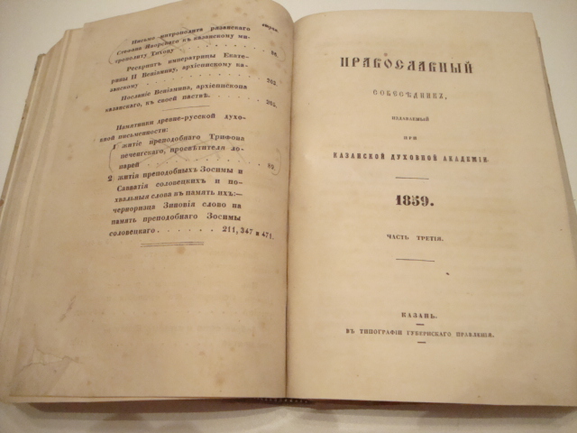 Православный собеседник. издаваемый при Казанской духовной академии. 1859г. 3 части в одной книге. 1009 стр.