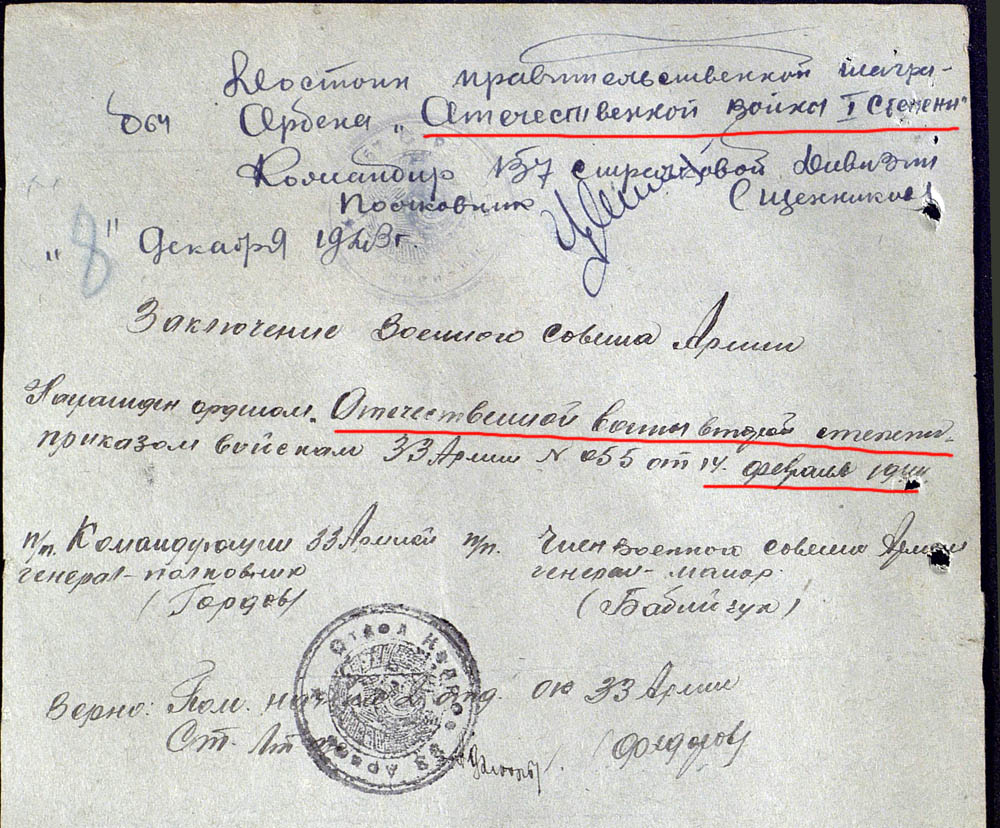 Об этом свидетельствуют потери, понесенные армией. Общее количество потерь, понесенных 33 армией, составляют свыше 50% от потерь всего фронта.