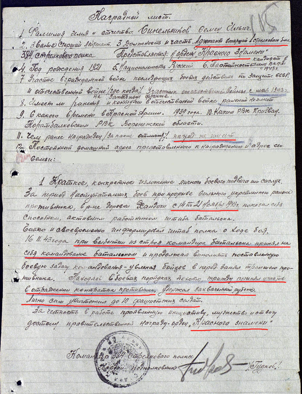 Оршанская операция 14-19 ноября 1943 г. (за эту операцию представлен к награде)