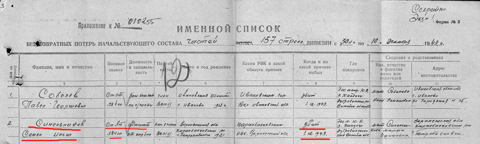 Оршанская операция 30 ноября—2 декабря 1943 г. (в этой операции 1 декабря погиб)