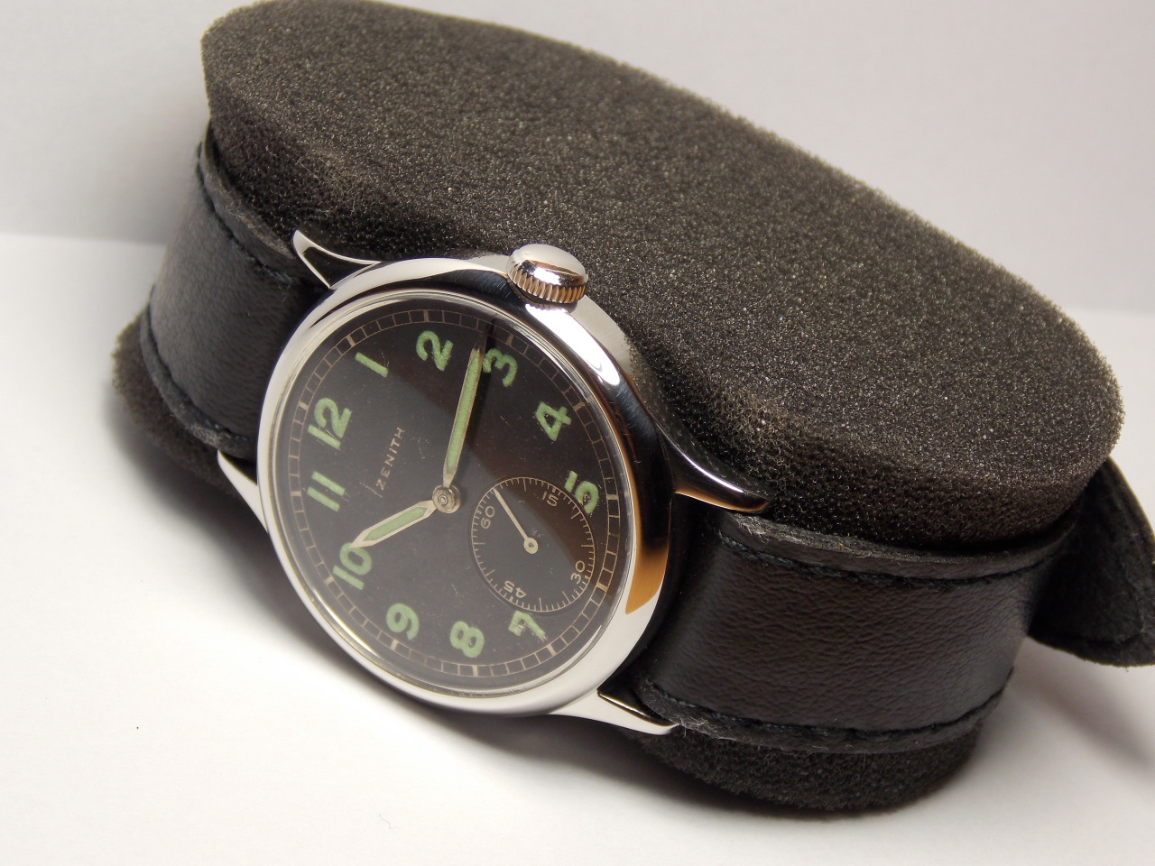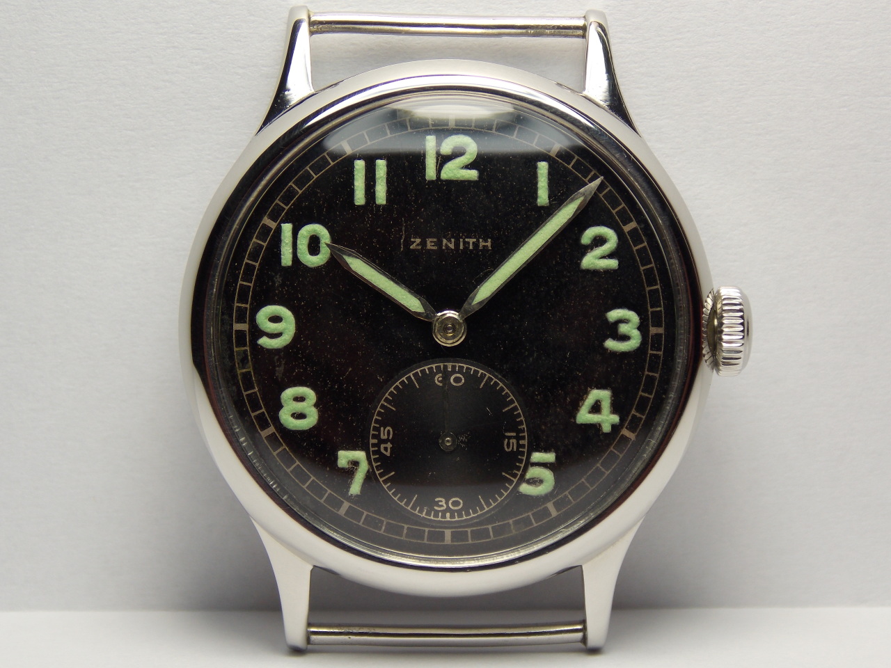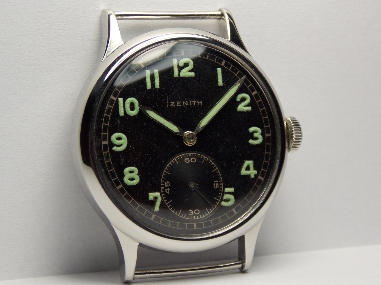 Часы после обслуживания мастера,на отличном ходу,на точность проверены по аппарату,корпус,головка,задняя крышка с нержавеющей стали,полировались,1942 года по номеру на механизме,антимагнитная крышка,стекло и радиевая светомасса заменены,ремень под несъемные ушки в комплекте.Диаметр с заводной головкой 37.5 мм. без 35 мм. по ножкам 42.5 мм. под ремень 18 мм. запас хода 47 часов и 51 минута. точность хода в сутки - 9 секунд.