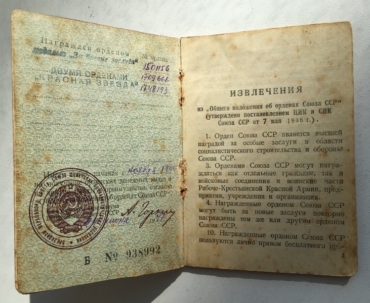 Книжка к медали ЗПНГ и орденская.