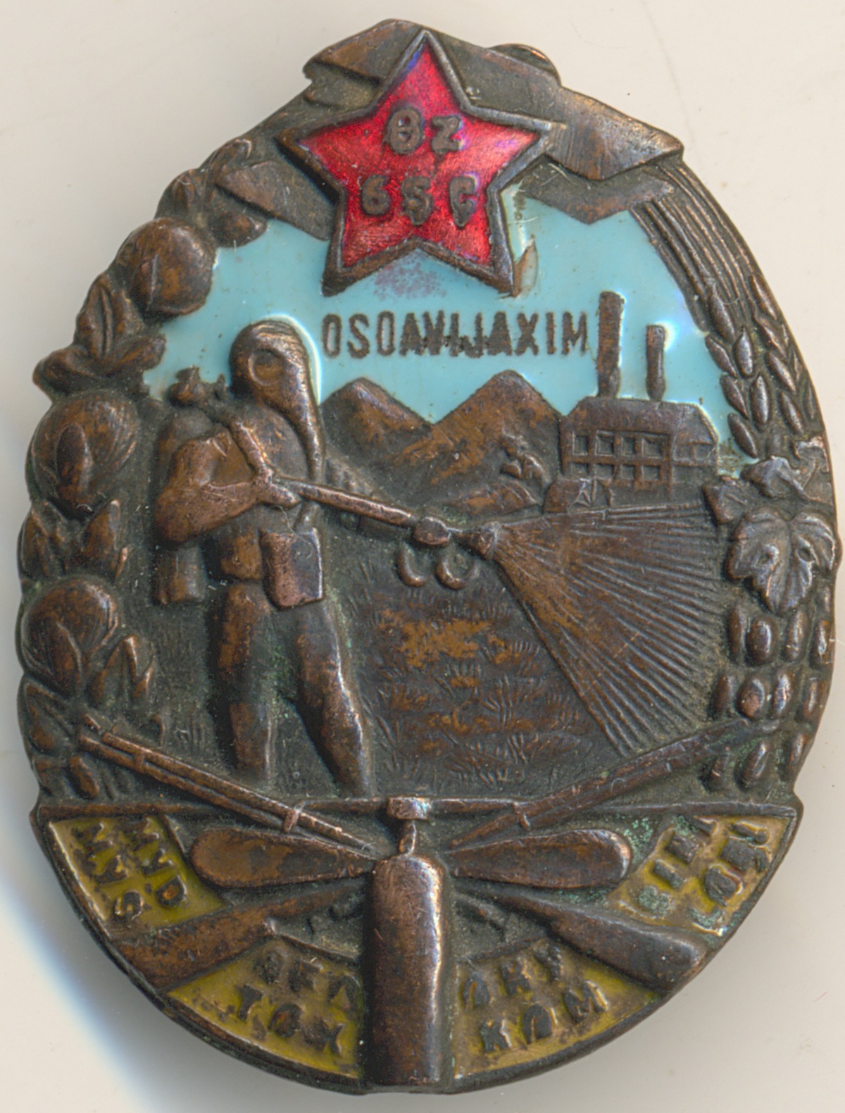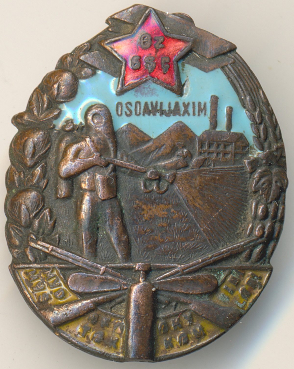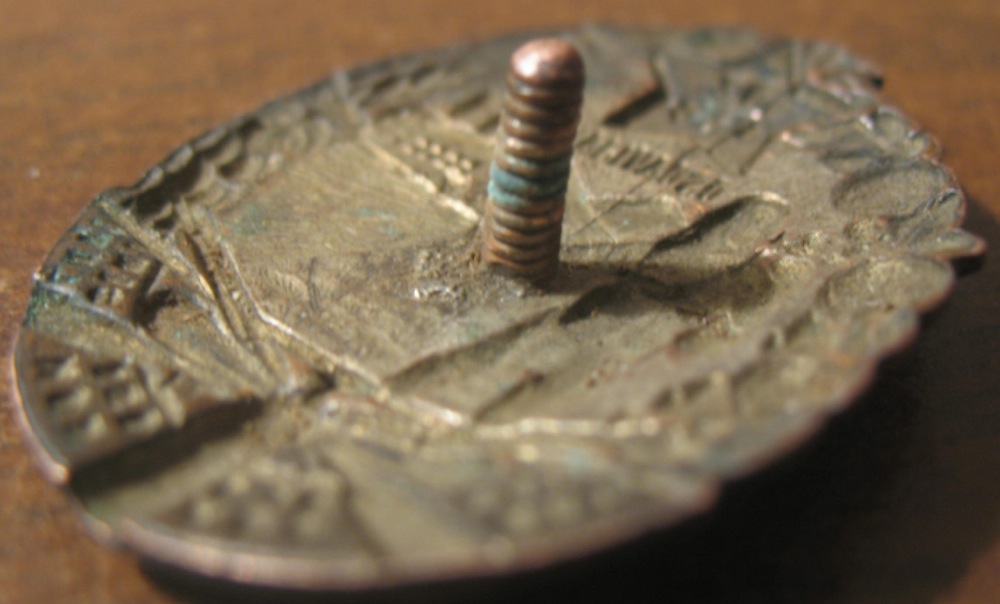 На синей эмали скол не до металла.