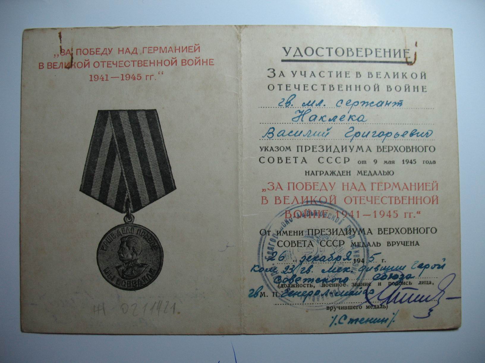 и Медальные документы с подписью Героев Советского Союза до 1950 года