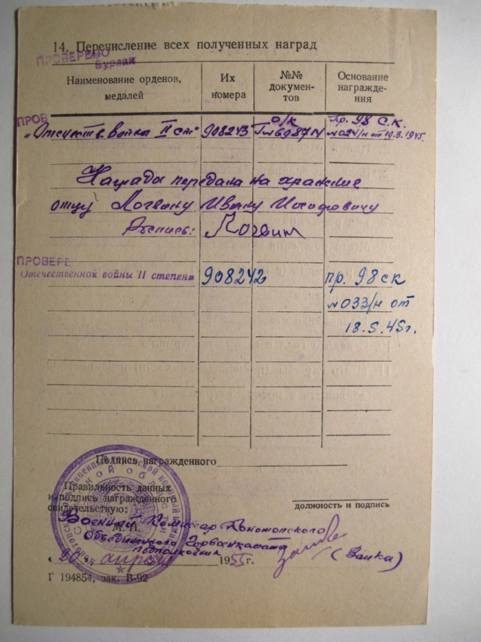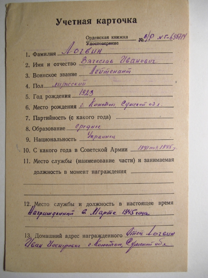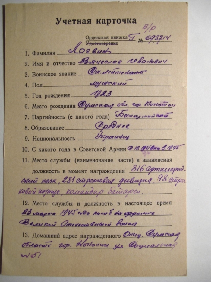 Два ОВ2 номера подряд посмертно на геройского лейтенанта.Награжден тремя ОВ 2!!!!