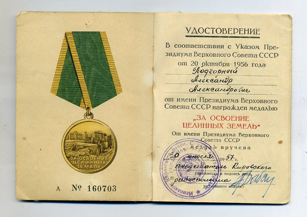 Медали Серп и Молот, За Трудовую Доблесть, За Трудовое Отличие, За Доблестный Труд в Великой Отечественной Войне,За Восстановление Предприятий Чёрной Металлургии Юга, За Восстановление Угольных Шахт Донбасса, За Освоение Целинных Земель, За Строительство БАМ, За Преобразование Нечерноземья РСФСР, За Освоение Недр и Развитие Нефтегазового Комплекса Западной Сибири, Ветеран Труда