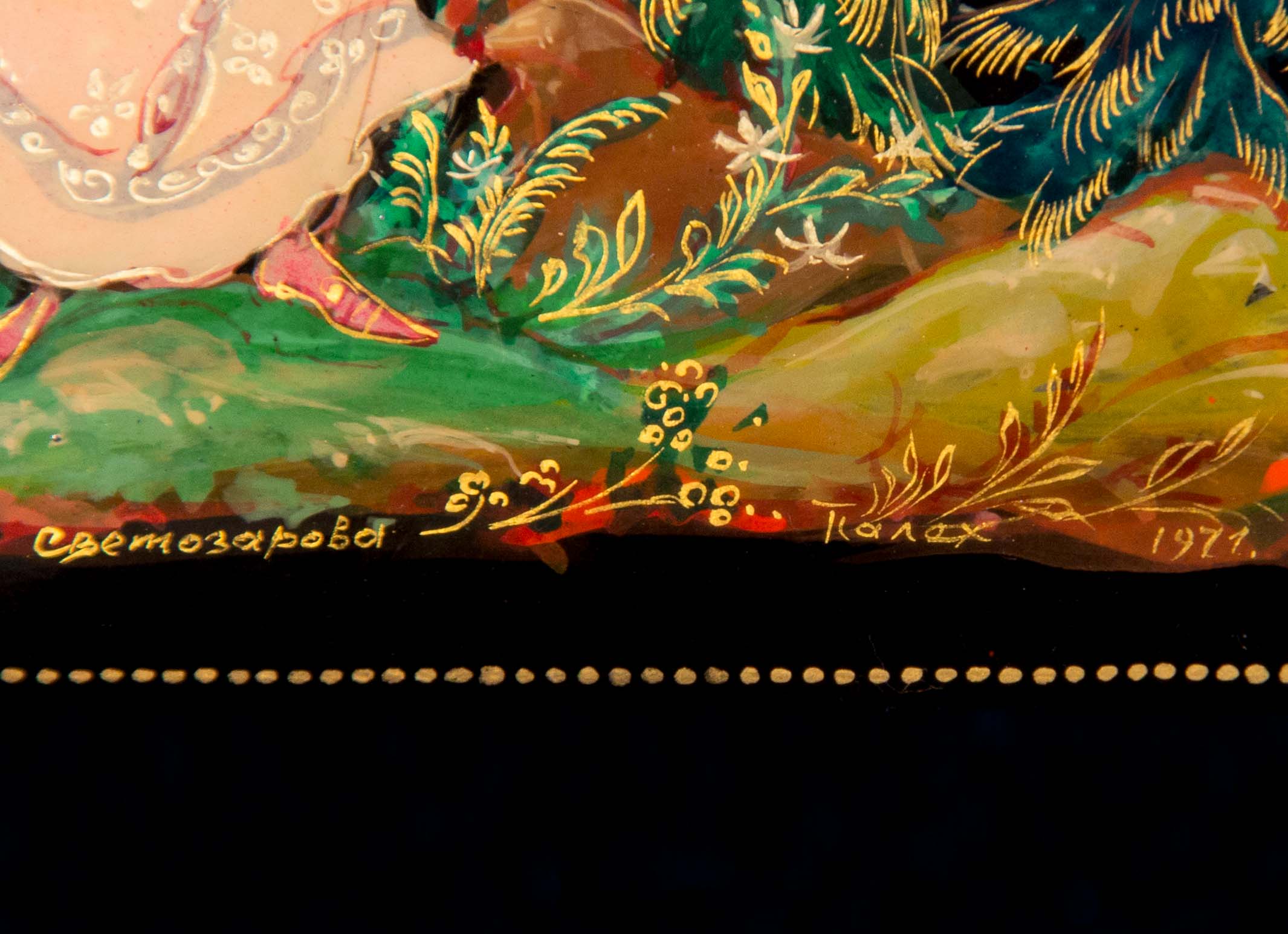 Работы Е.Д.Светозаровой (Буториной, Щуриной ) хранятся в Государственном музее палехского искусства, Художественном Фонде России а так же очень популярны в США. Вот уровень цен на ее работы http://www.ebay.com/sch/i.html?_from=R4 ... a&_sacat=0