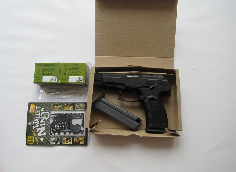 В комплекте 2 пачки патронов, тактическая визитка нинжаго и пистолет. Стоимость 44000 руб (при рекомендуемои и продаваемом многими 45 и более), учитывая халявные 2 пачки патронов (1 тыс руб) уже 43. про визитку я даже не говорю.