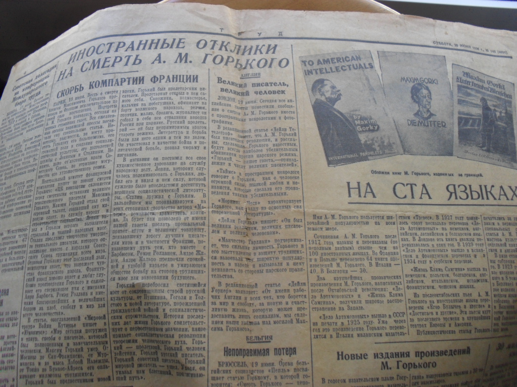 Газета Труд. Похороны Горького bor - 23 окт 2015 15:05.27 × Мини профиль пользователя bor Сообщения: 2571 Зарегистрирован: 28 июн 2011 13:32.39 Статус: Не в сети - 23 окт 2015 15:05.27 #5371322 Предложите, если интересно.Торги по РФ + пересыл Фото