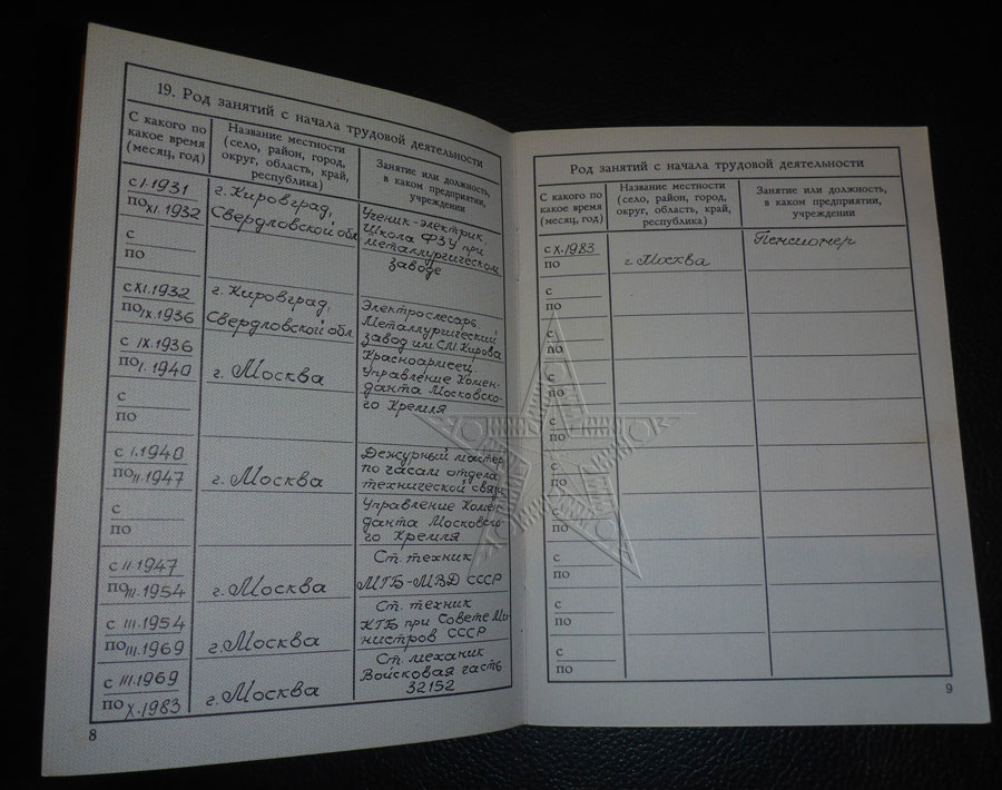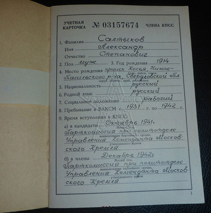 Карточка принадлежала Салтыкову Александру Степановичу, служившего с 1936 года в Кремле. Занимался обслуживанием Курантов.