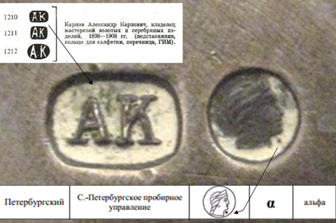 Дельфин---Если на Вашем изделии одна точка под подбородком,у девушки в кокошнике,то это С.Петербург,в словаре П/Л подходит-(АК) А.Карпов.