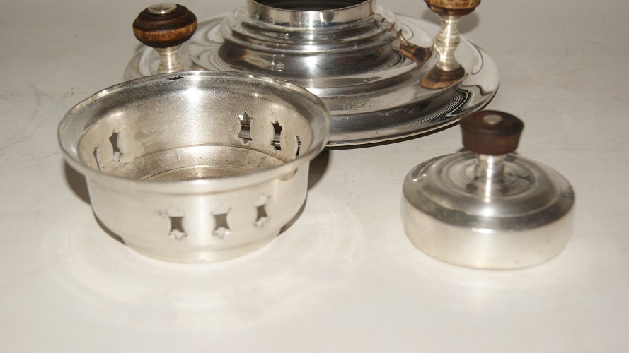 Может приглянется кому то.Самовар обьемом 4 литра.Приведен в рабочее состояние.Чистый и снаружи и внутри.Колосник новый,крышка зольника имеется.Конфорка и заглушка литье.Были с этим самоваром.Верток родной,даже не капает.Цена фиксировано 12 т.р.Из серьезного -ремонт одной из ручек.небольшая пайка посадочного места.Остальное все косметика.