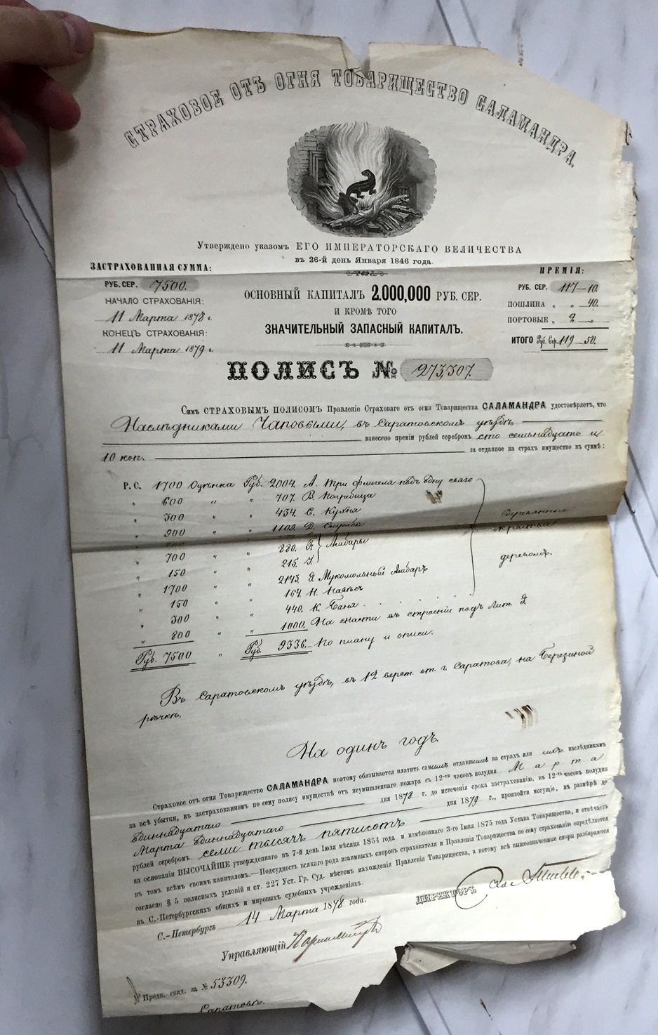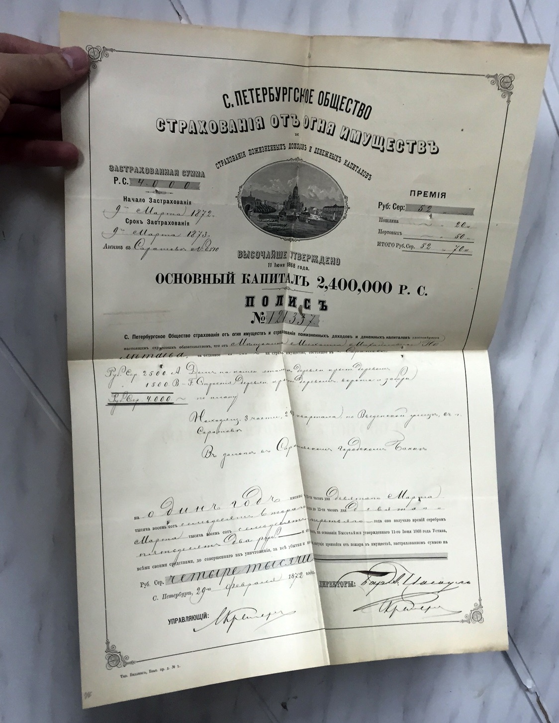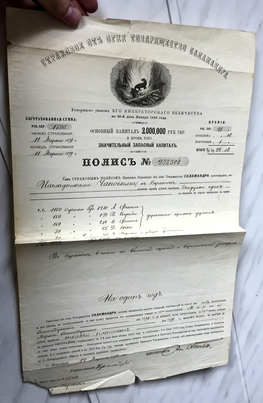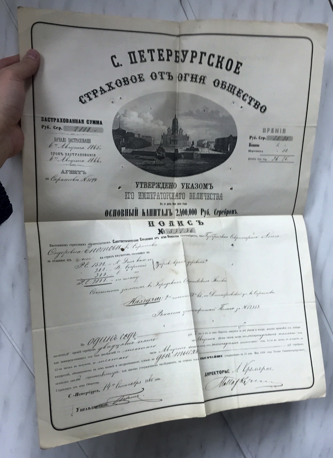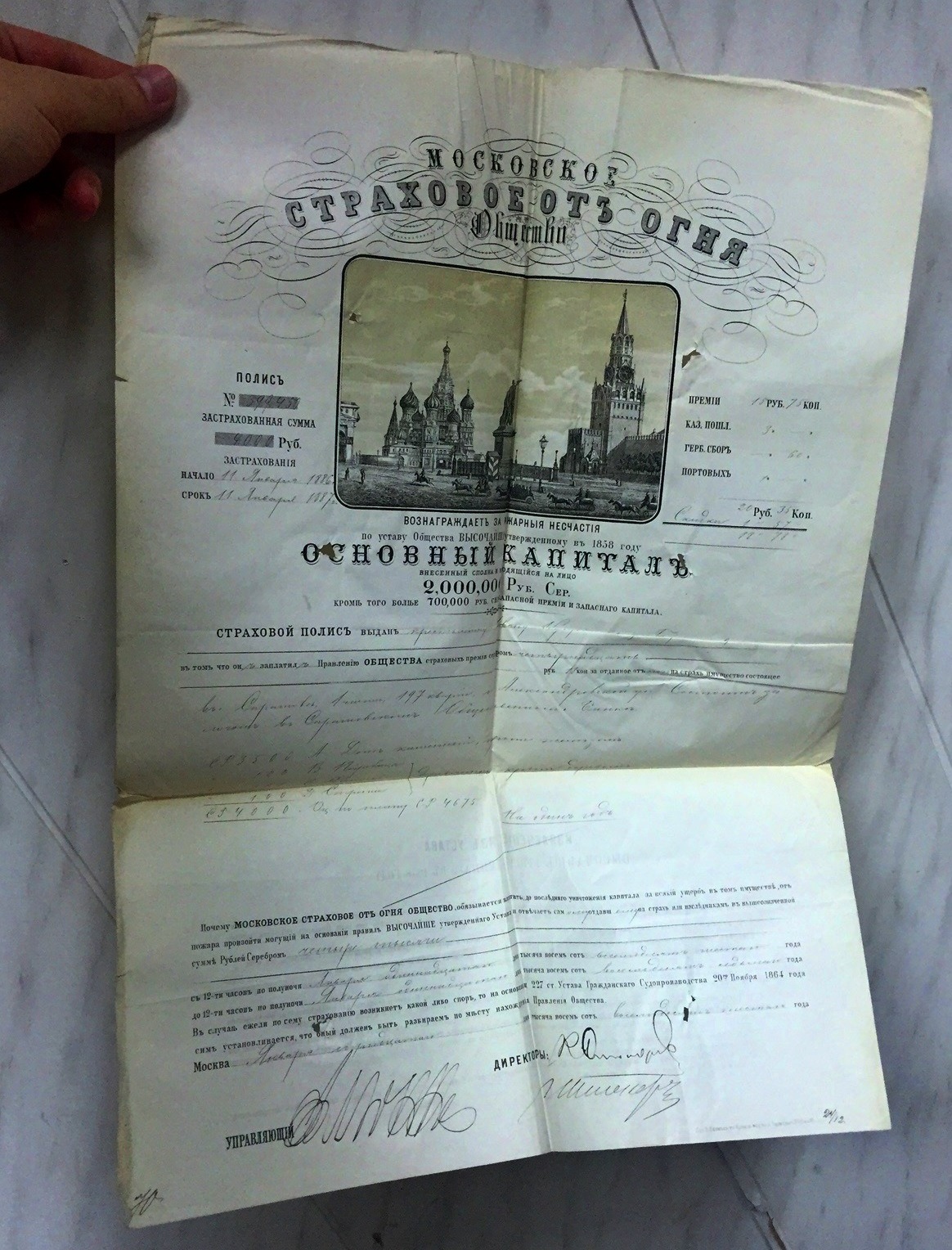 Дореволюционные страховые полисы.