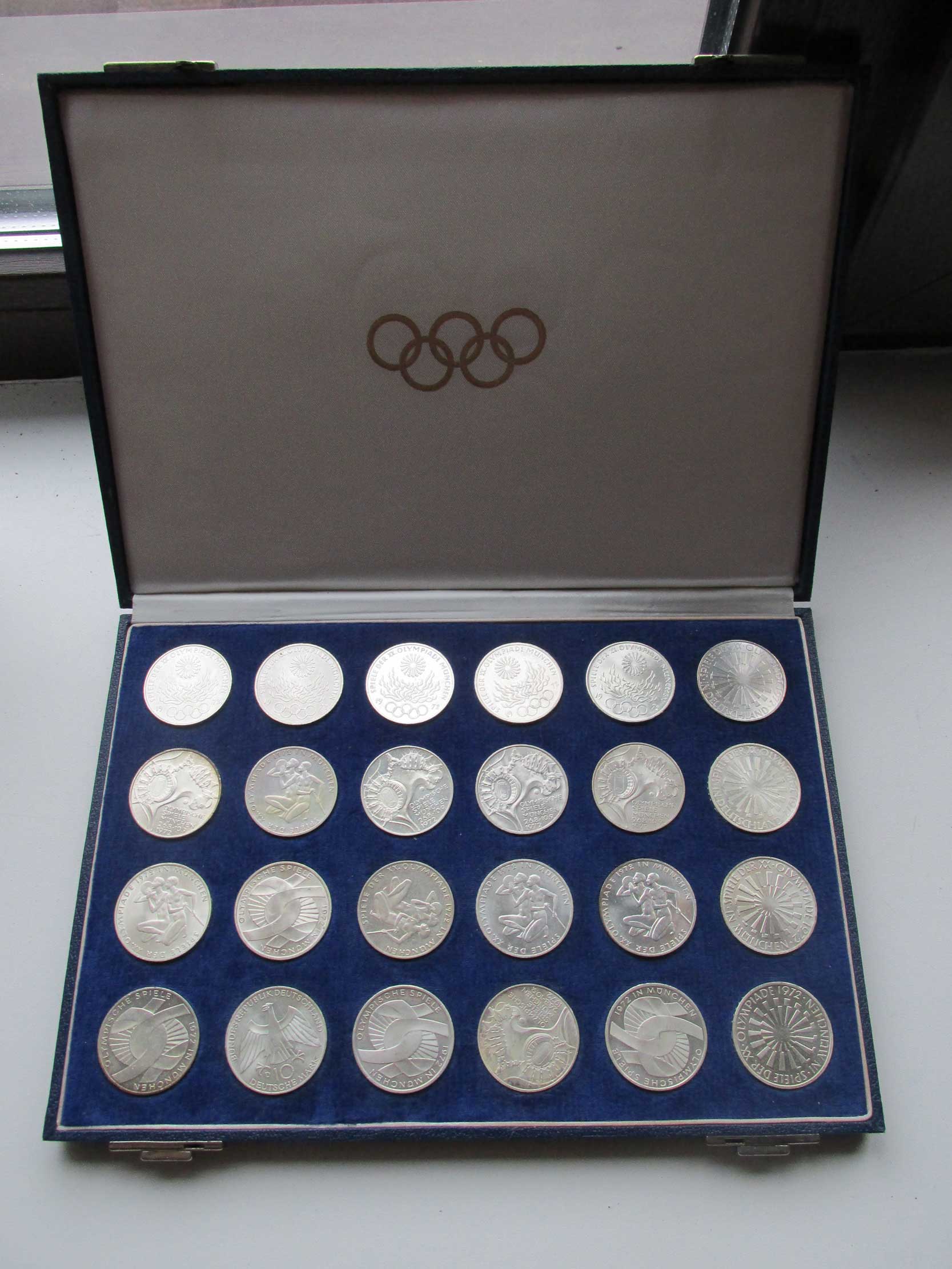 Продам 24 монеты Комплект 10 марок олимпиада в Мюнхене в коробке Ag