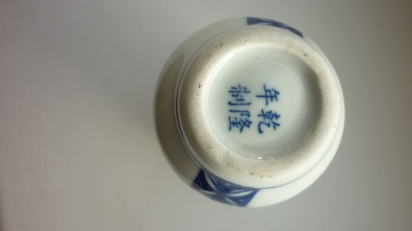 Китай ,20 век, подглазурная роспись, подглазурное клеймо, высота 9,5 см