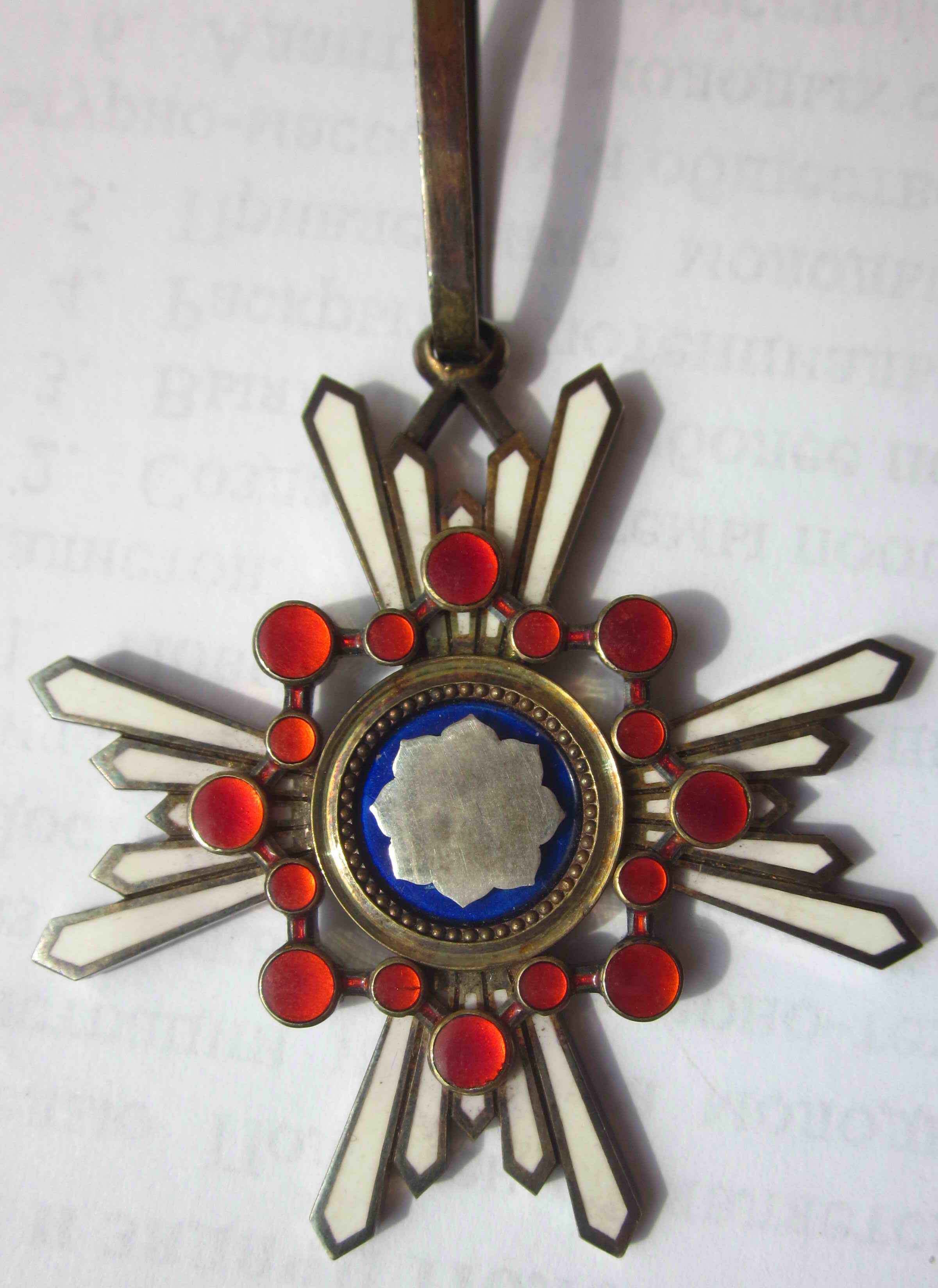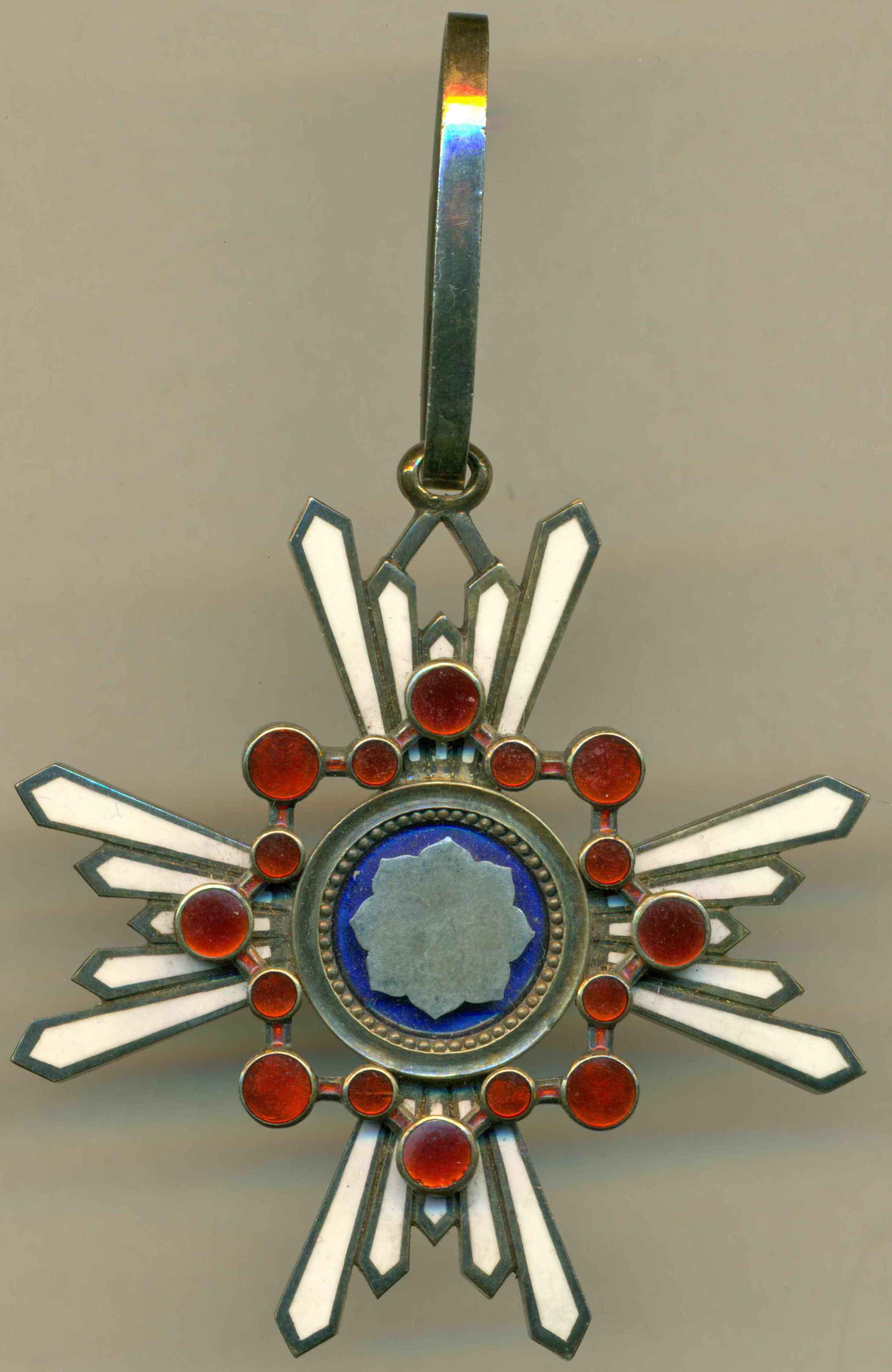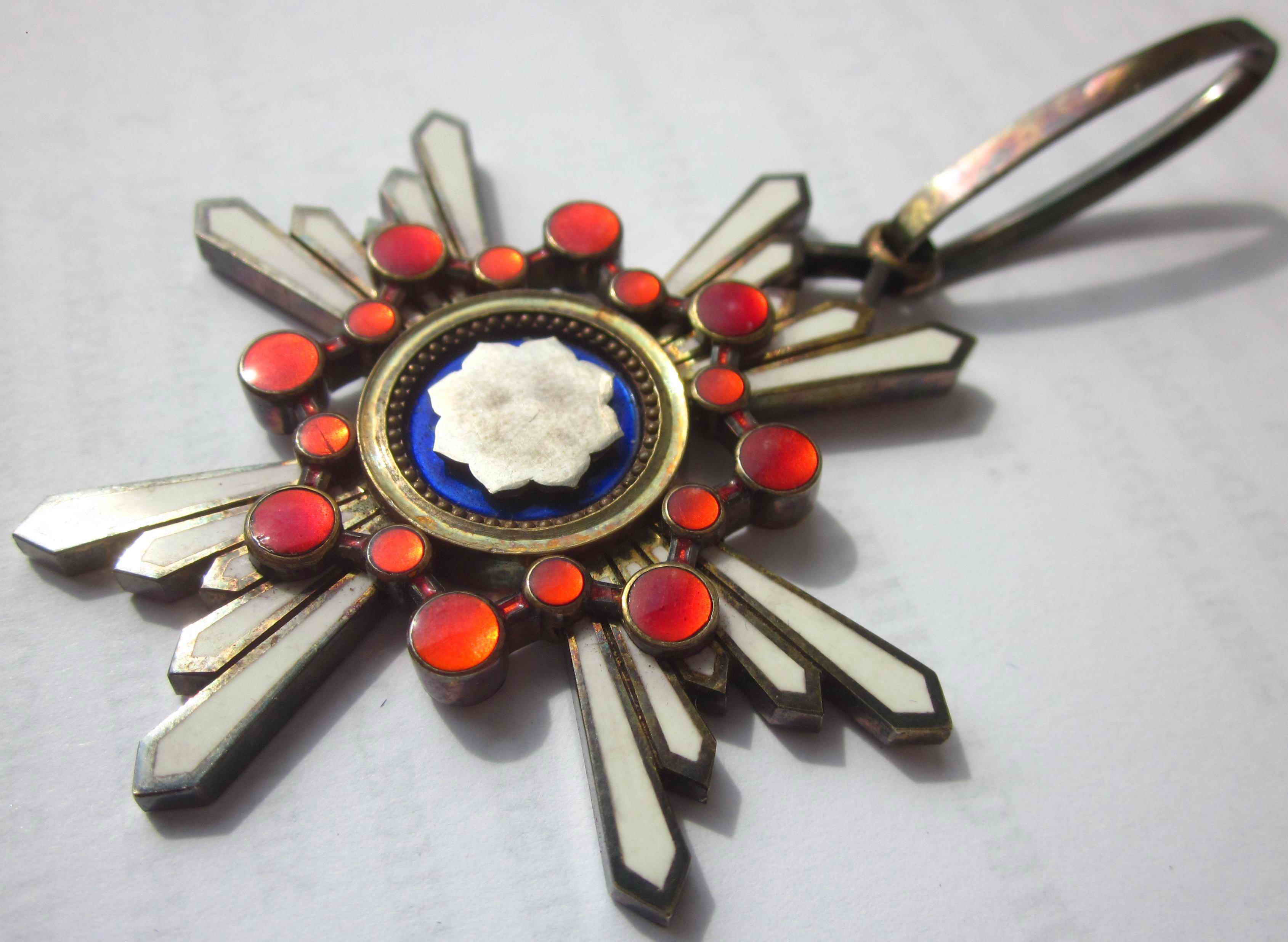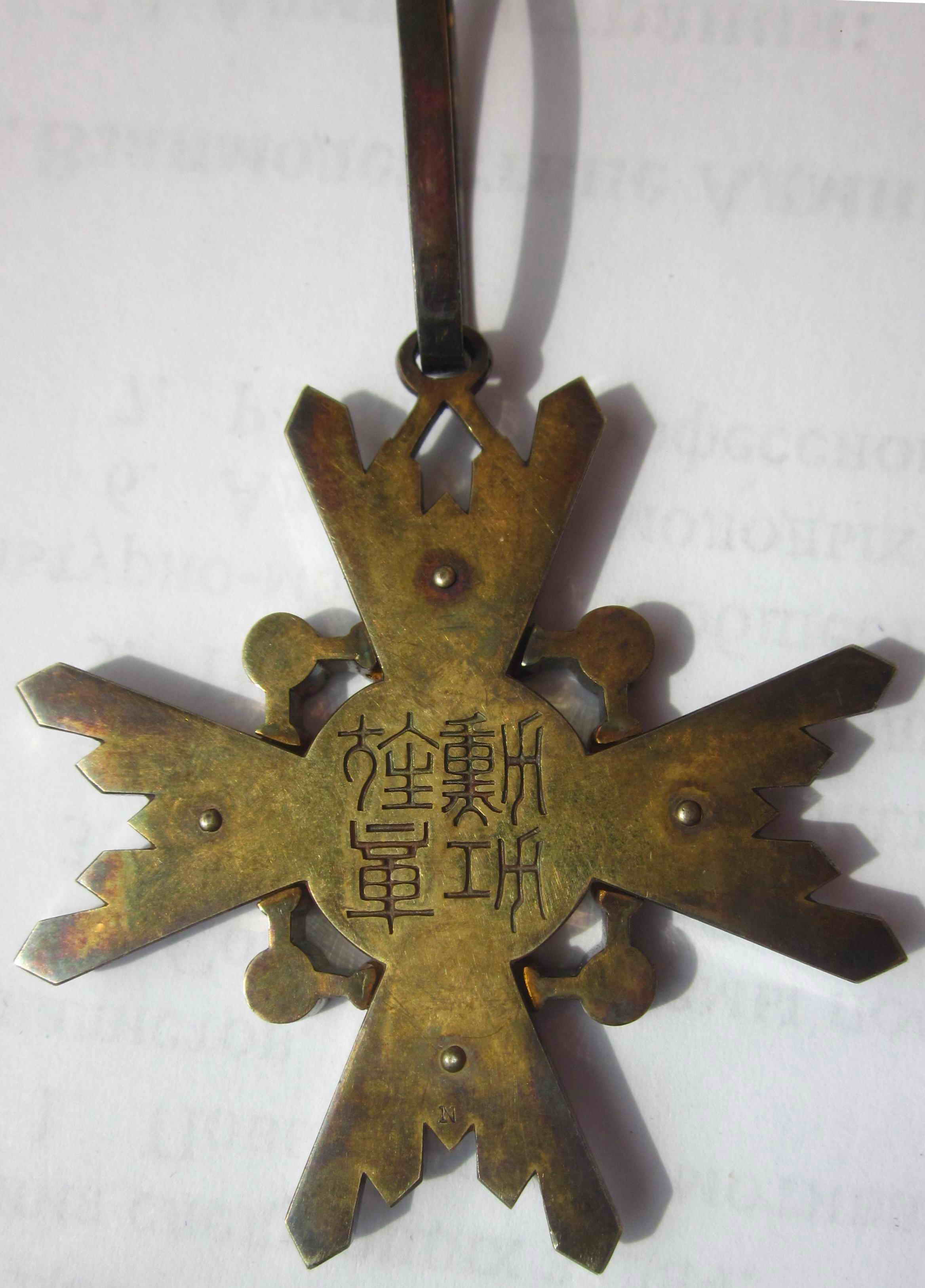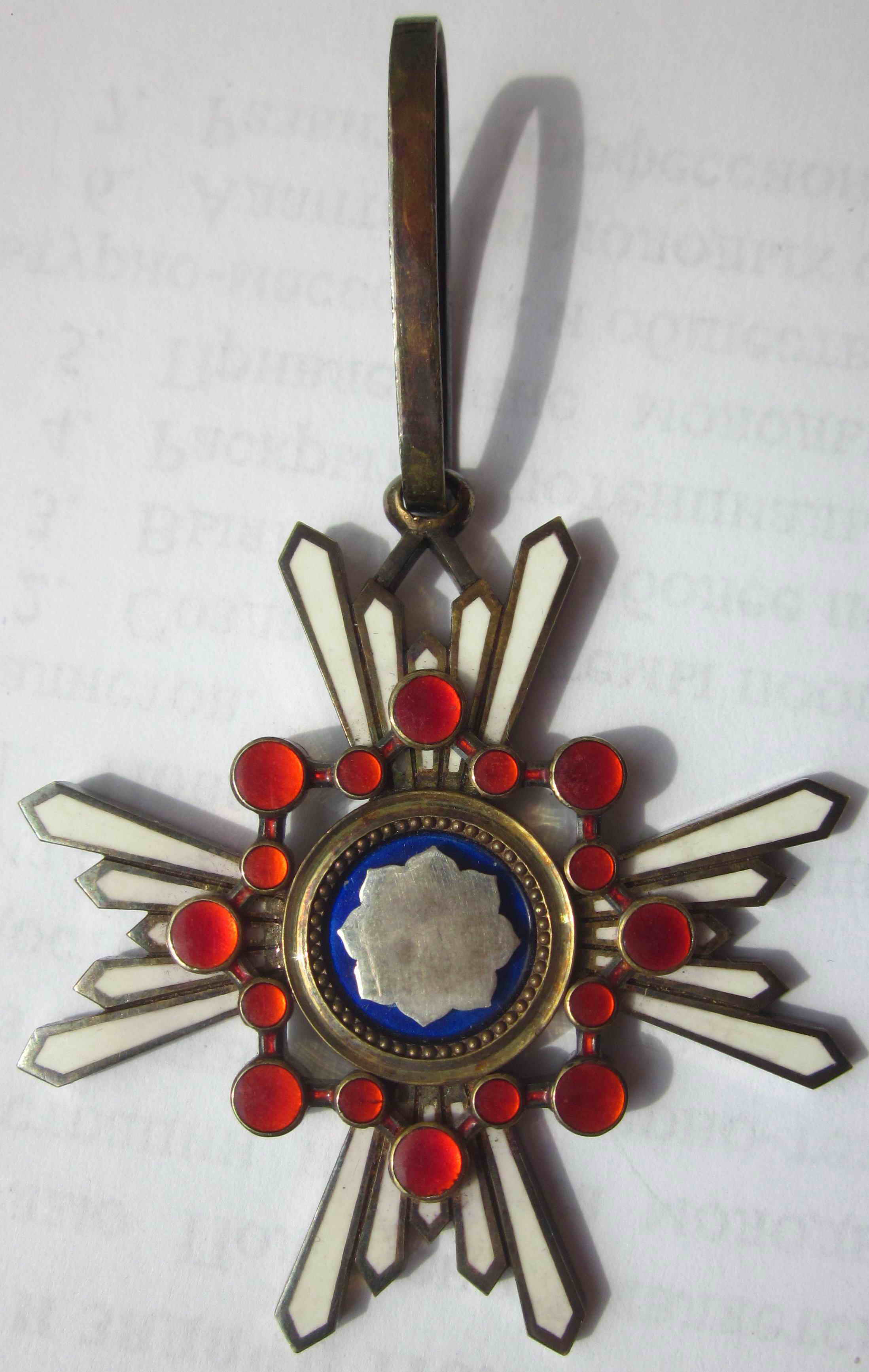 Знак Ордена третьей степени диаметром 55 мм, из позолоченного серебра, подвешен на позолоченном ушке. Родная лента утрачена. Прилагается фрагмент новой орденской ленты.