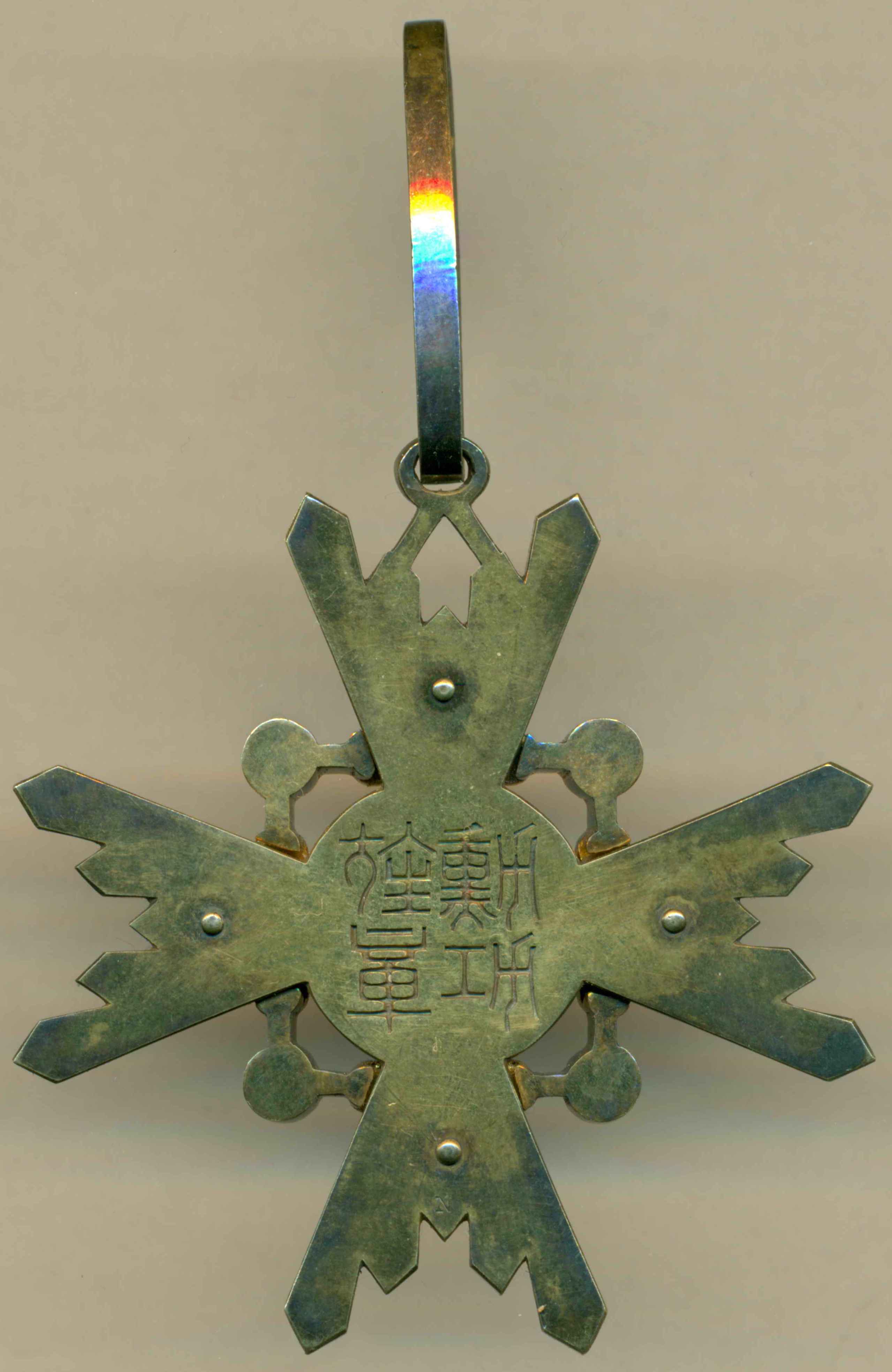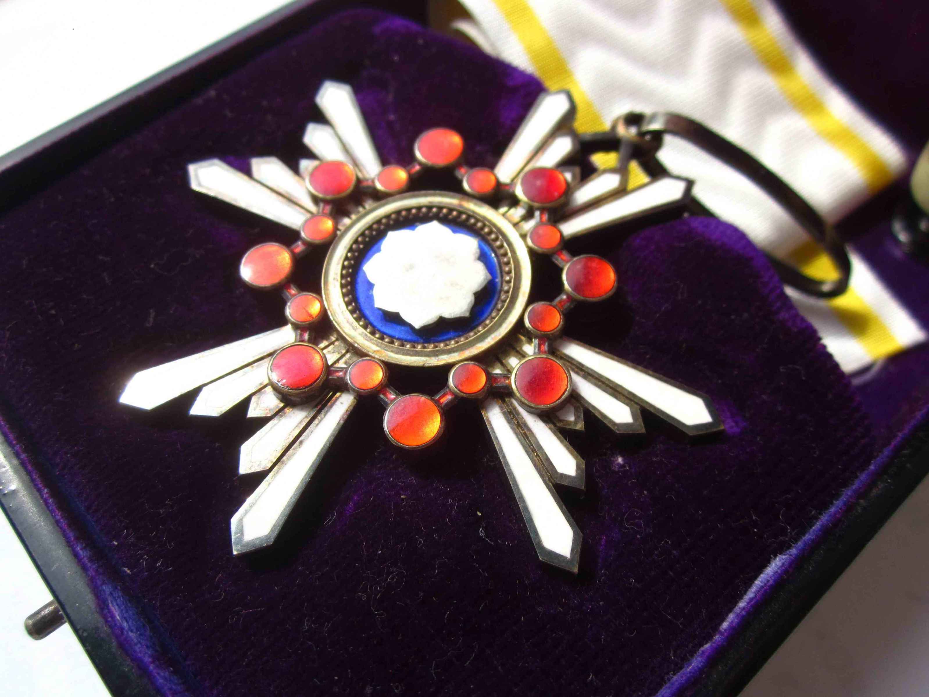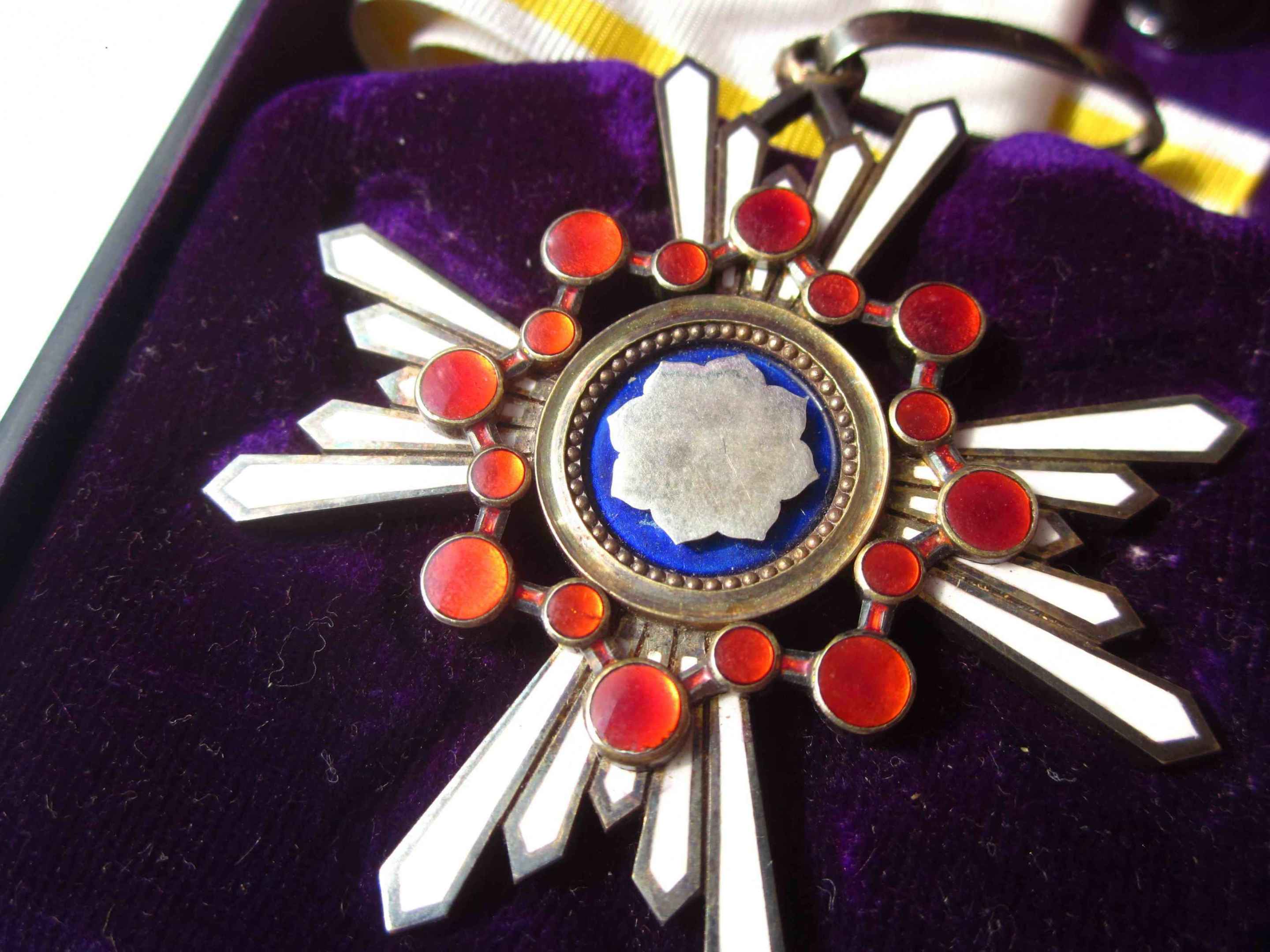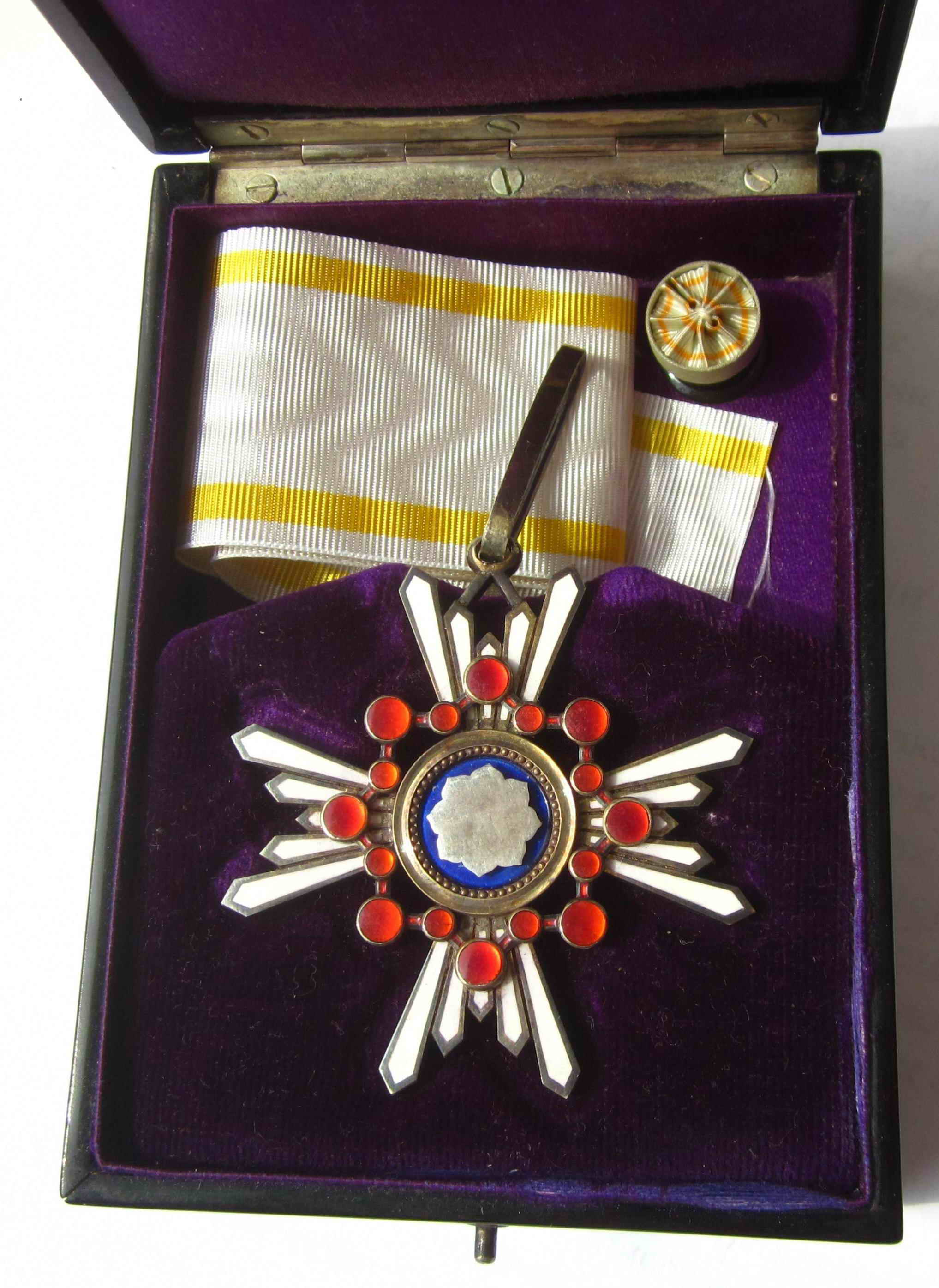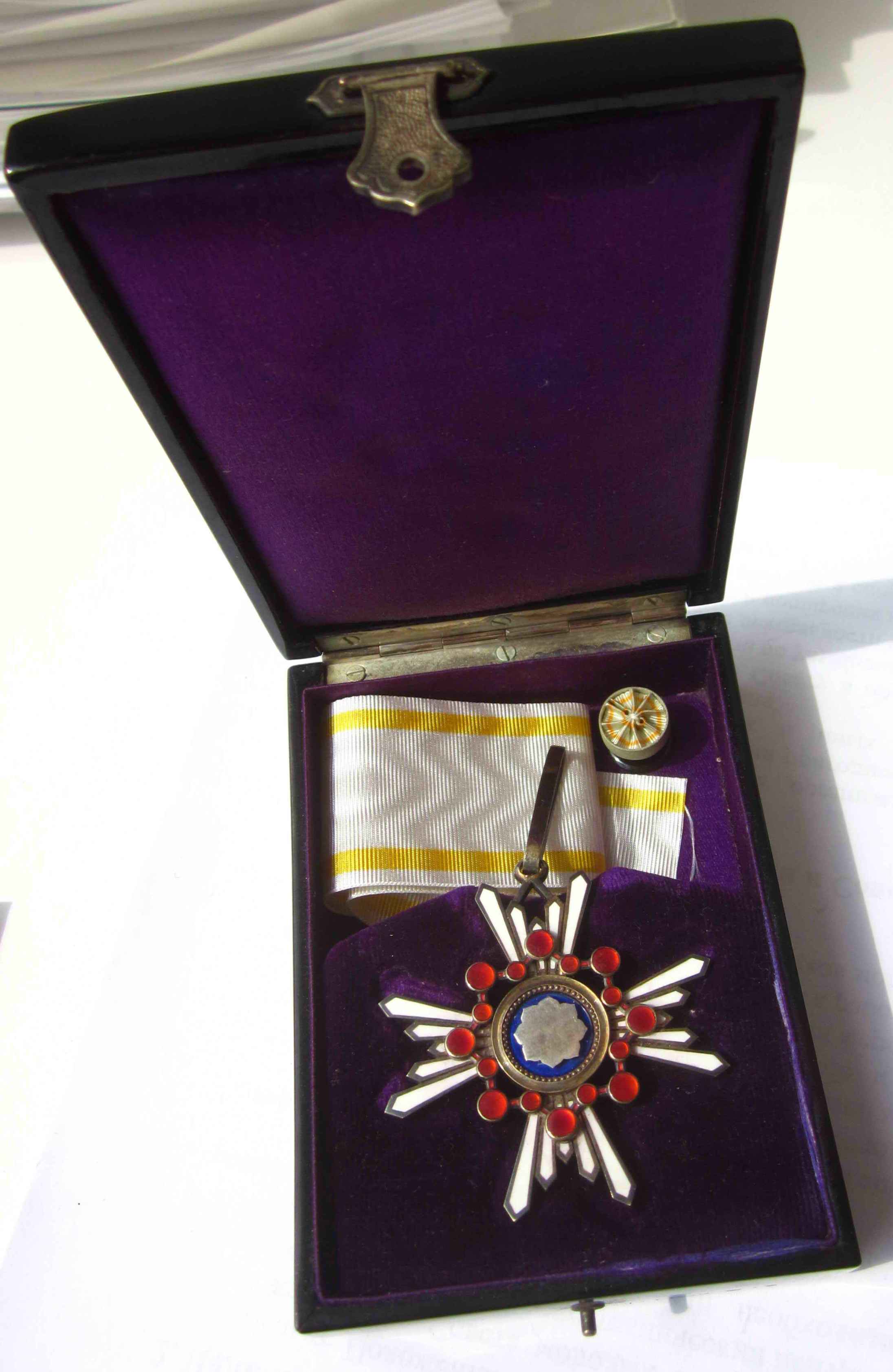Знак Ордена третьей степени диаметром 55 мм, из позолоченного серебра, подвешен на позолоченном ушке. Родная лента утрачена. Прилагается фрагмент новой орденской ленты.