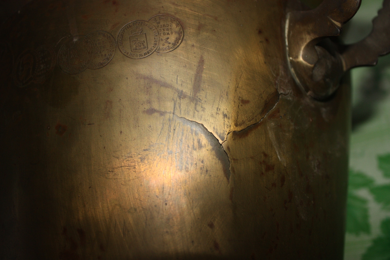 1. трещины возле ручки.