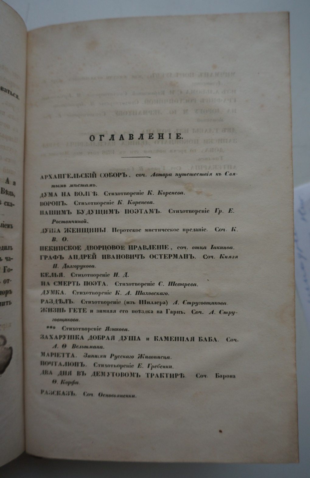 В данном томе опубликованы стихотворения М.Ю.Лермонтова "Графине Ростопчиной" и "Из альбома"(С.Н.Карамзиной), а так же стихотворение Гр. Ростопчиной "На дорогу Михайлу Юрьевичу Лермонтову".