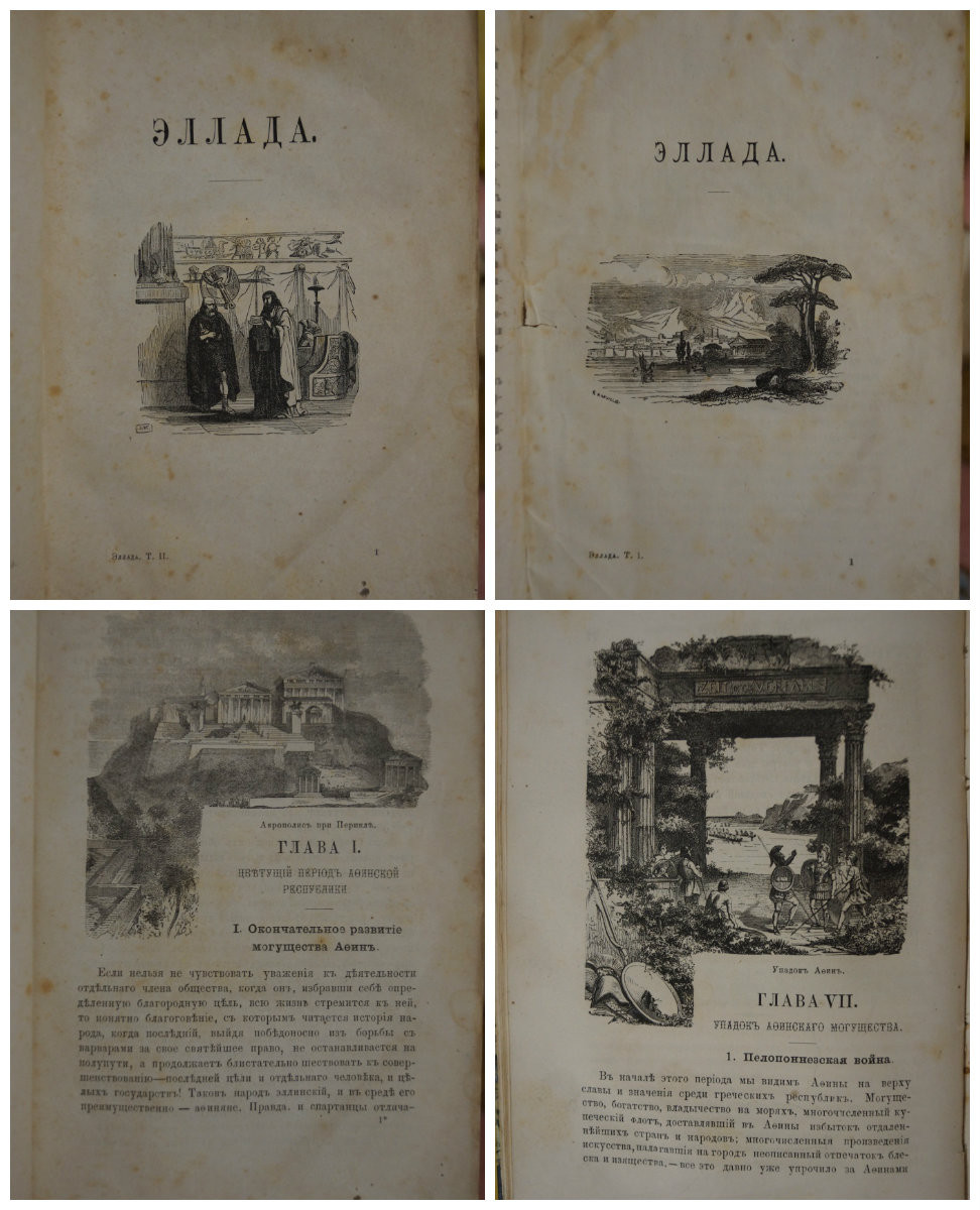Вегнер Вильгельм, д-р. Эллада. Картины Древней Греции, ее религия, могущество и просвещение. Для любителей классической древности и просвещения юношества. В двух томах, в двух переплетах. Перевел с немецкого П. Евстафьев. Издание третье — СПб., М.: Издание книгопродавца-типографа М.О. Вольфа. 1878г.