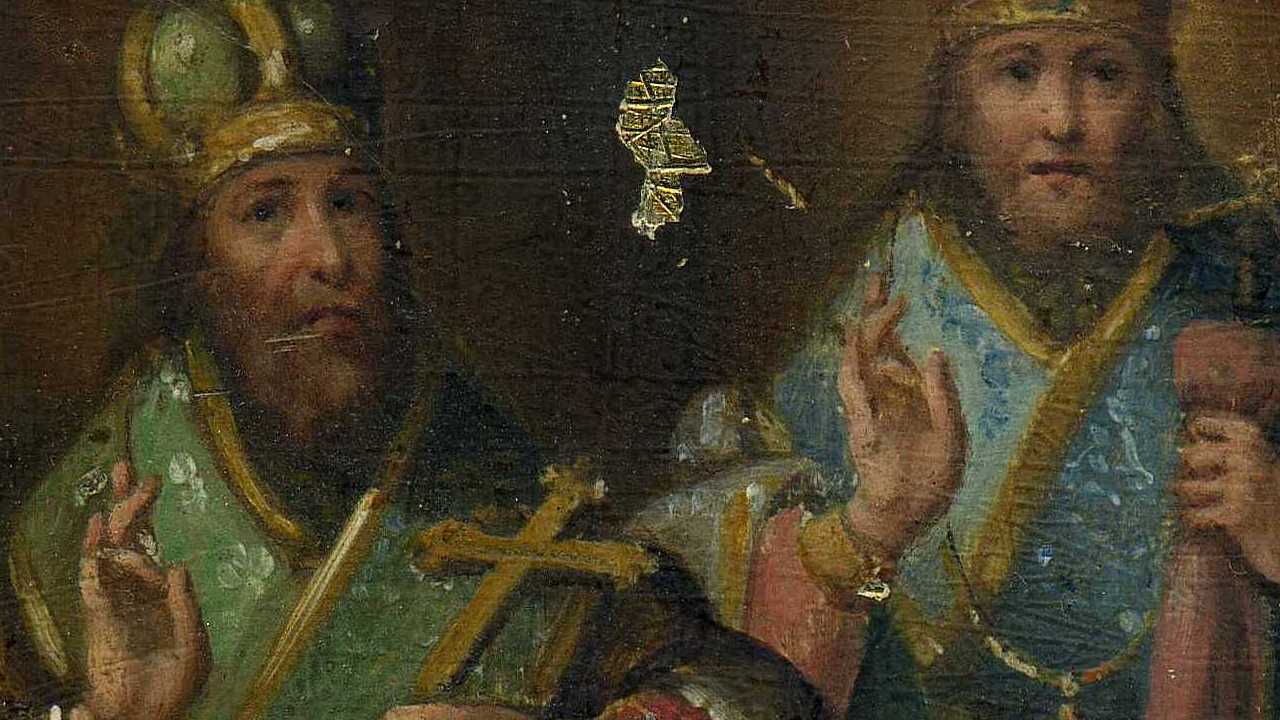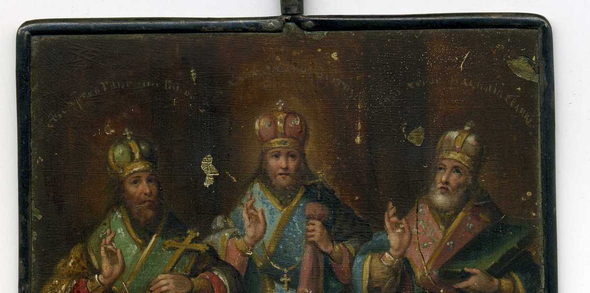 Надписи перепутаны: Василий Великий всегда с темной бородой-он слева от Иоанна, а с седой - Григорий Богослов- он справа(подписан Василием).