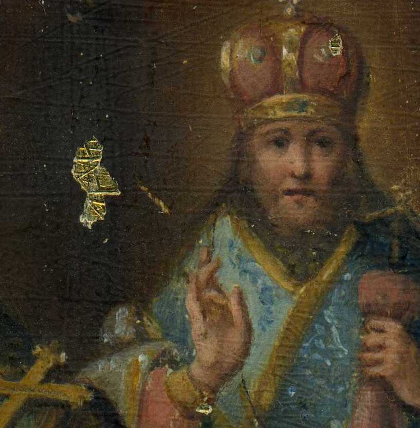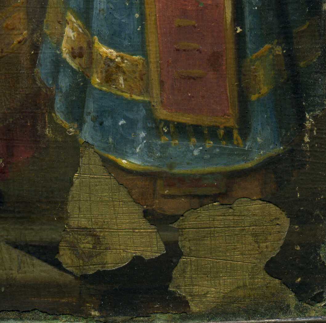 Основа- бронза (возможно с золочением), произвольные насечки, тонкий левкас,письмо маслом.
